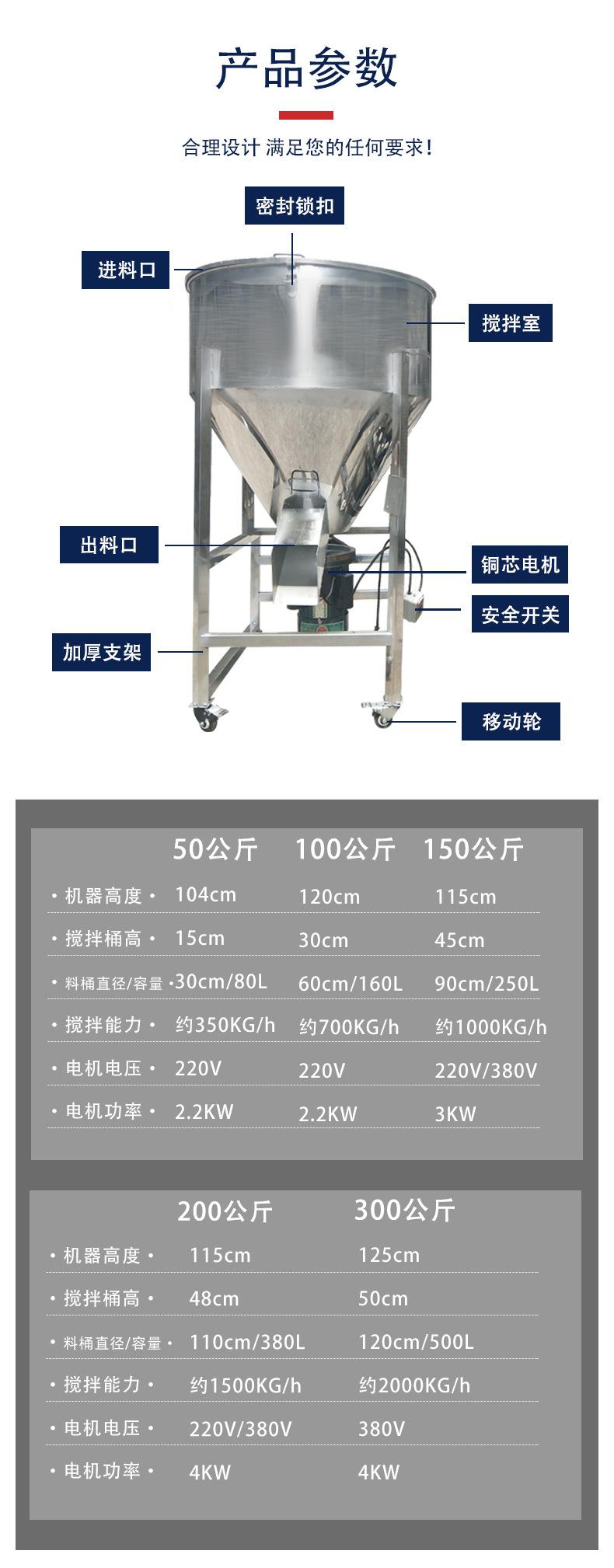 Mezcladora vertical de acero inoxidable 304, trituradora y mezcladora de polvo de PE de 200 kg.