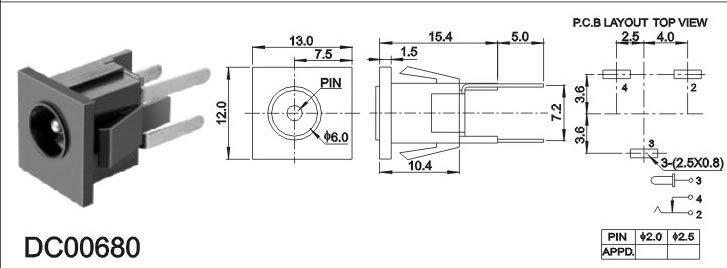 Suministro de alimentación DC068, toma de corriente, toma de corriente, toma de corriente cuadrada, orificio redondo, tipo tarjeta, tres pines, pequeña interfaz de alimentación de CC para carga de energía.