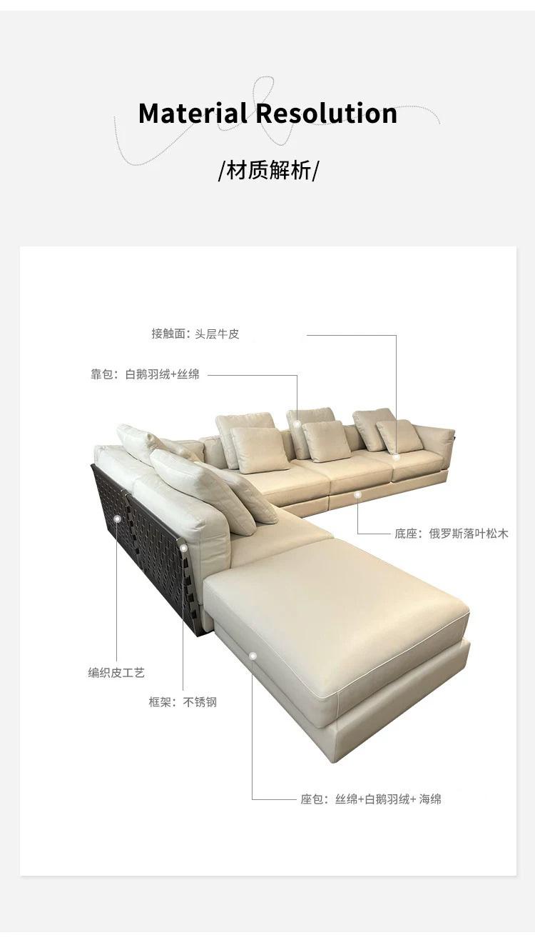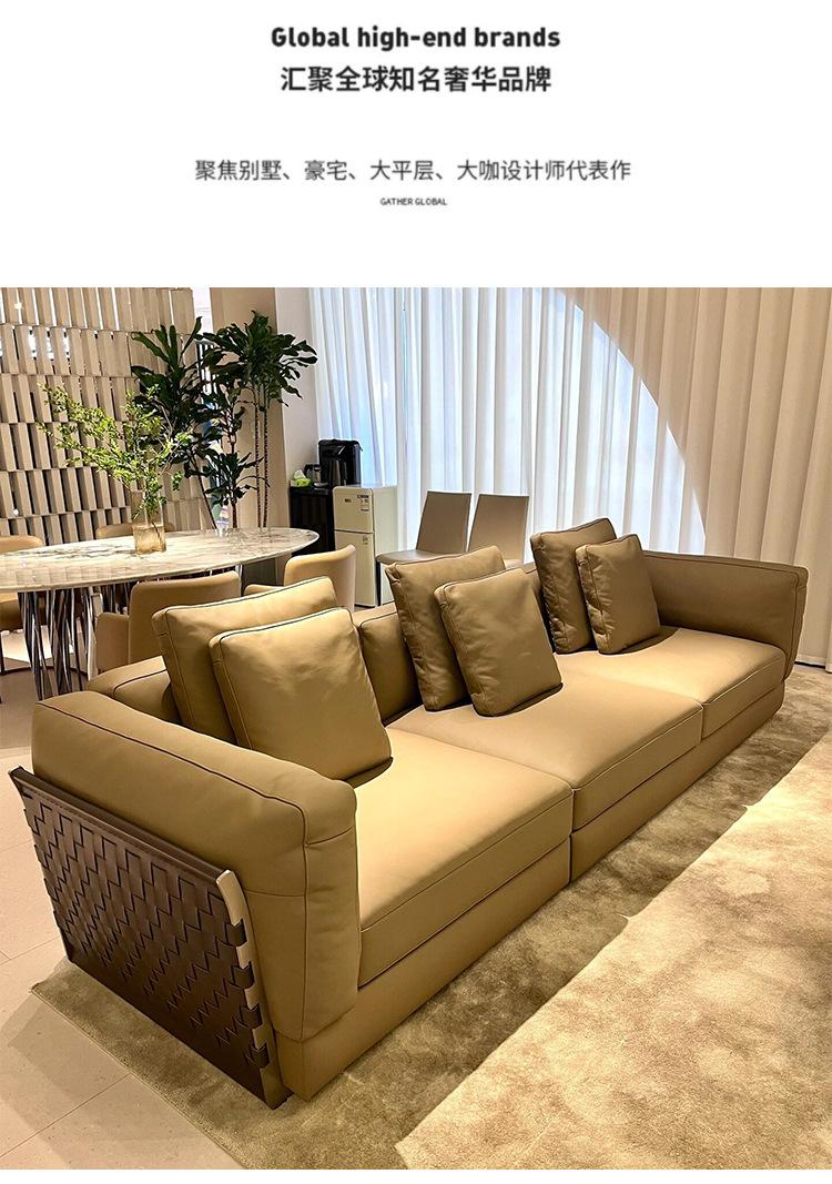 Flexform Sofá minimalista italiano Cestone de cuero tejido tela sala de estar apartamento grande fila recta capa plana grande