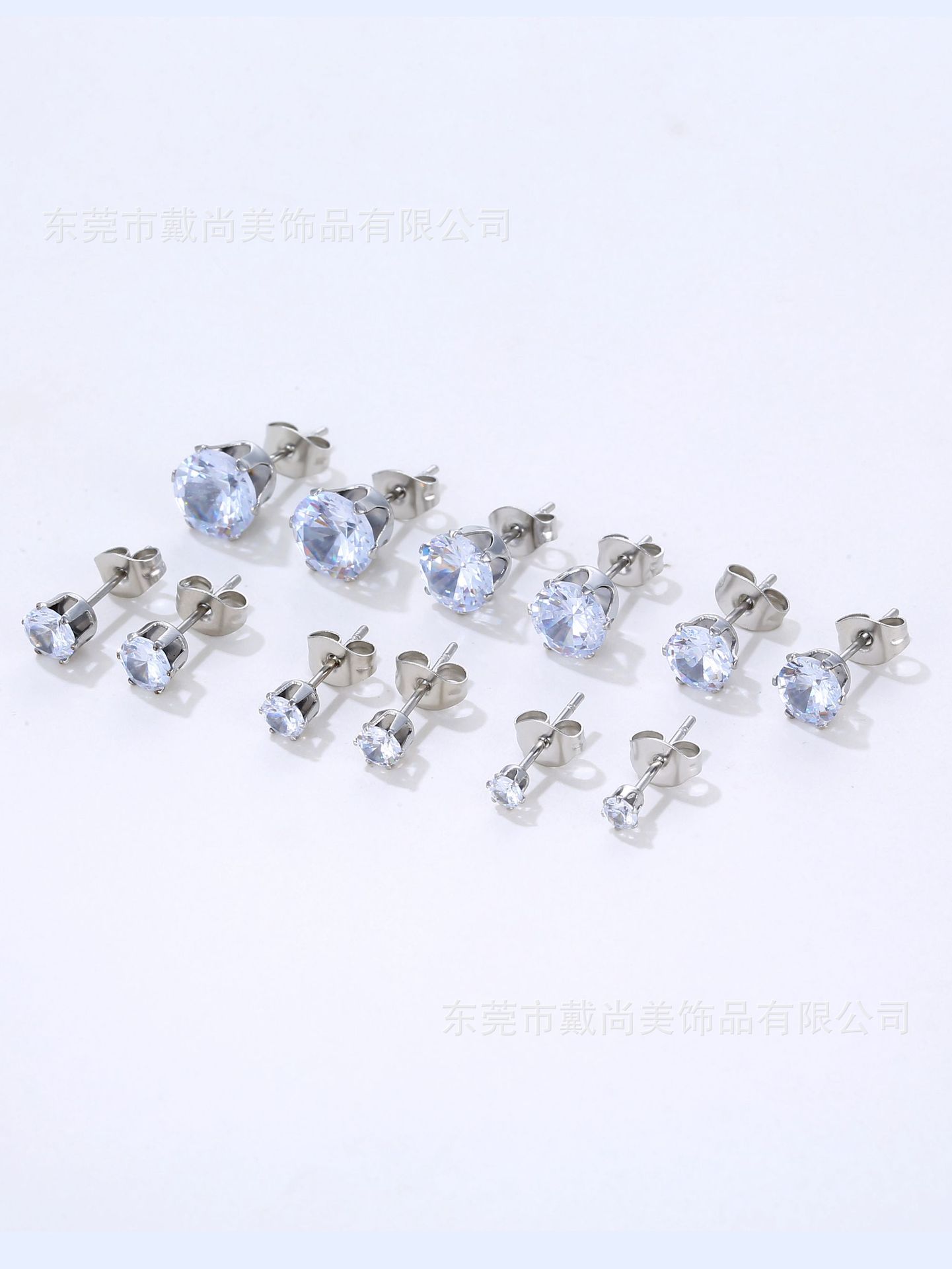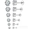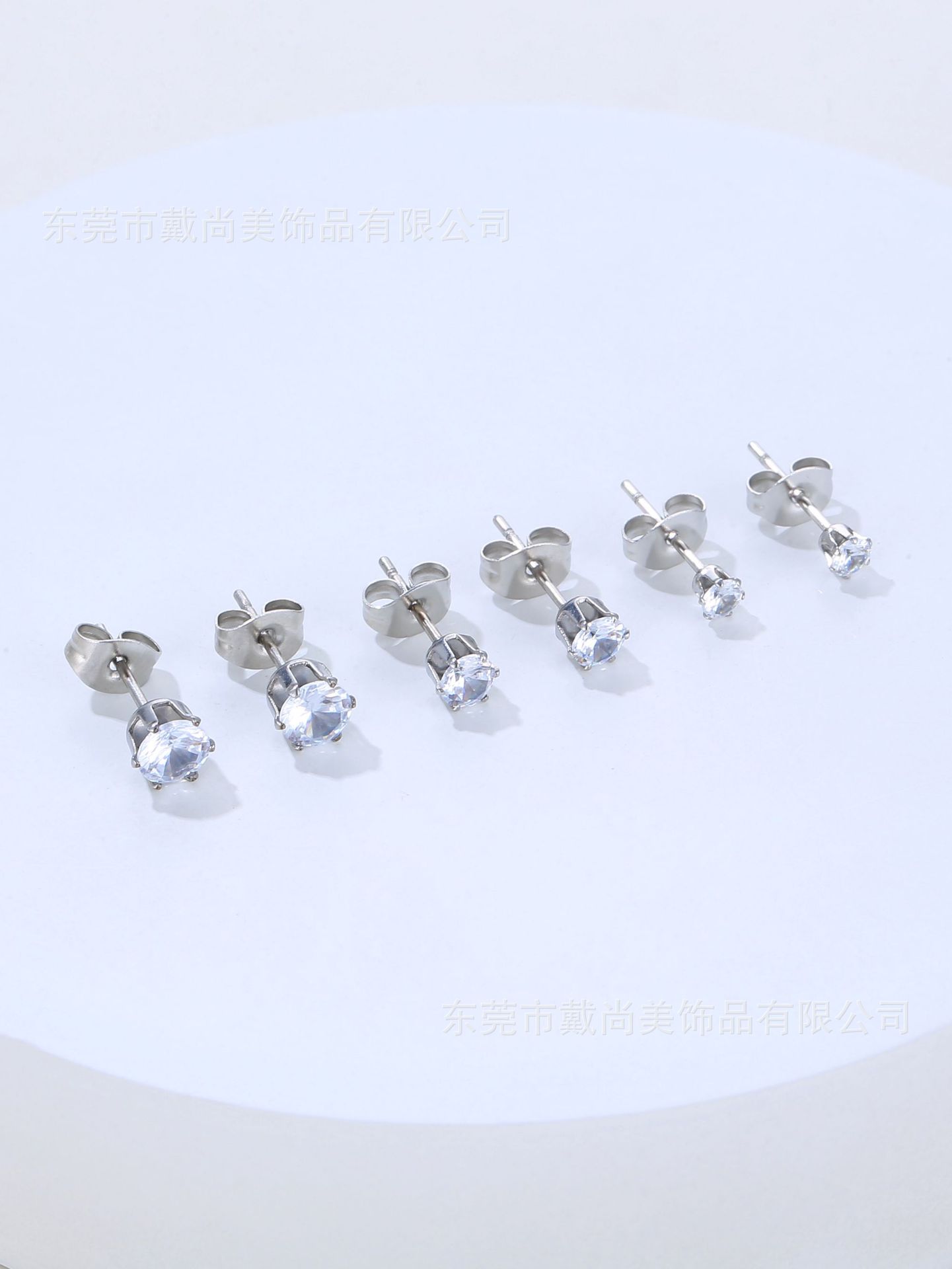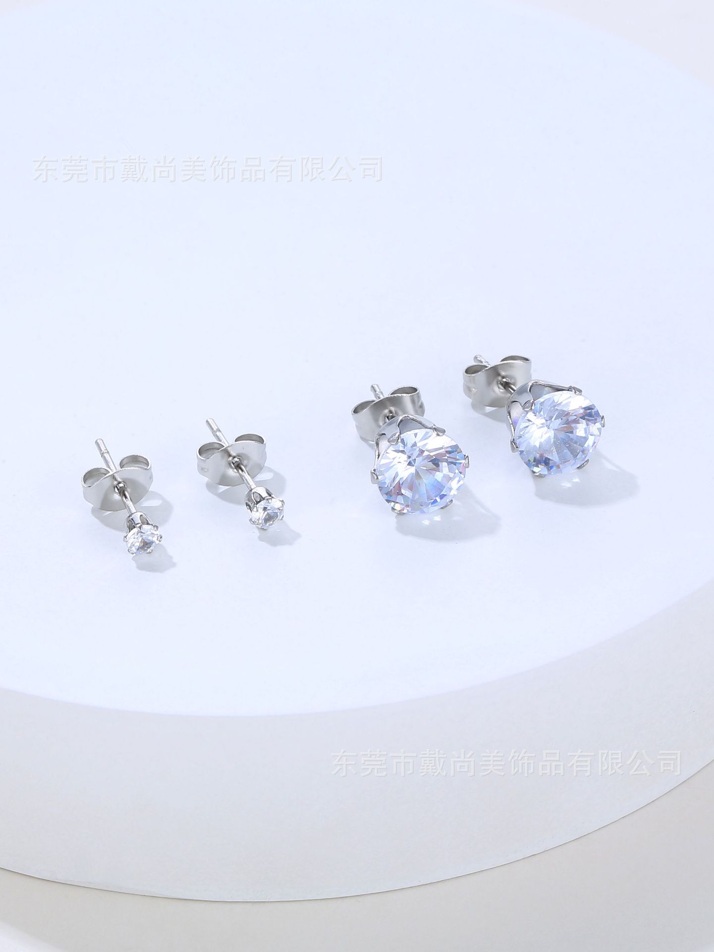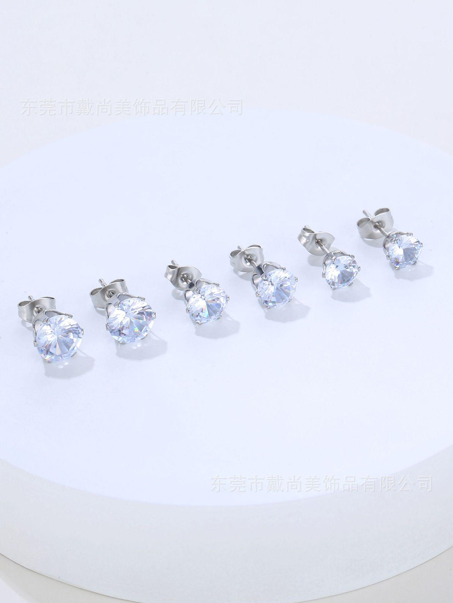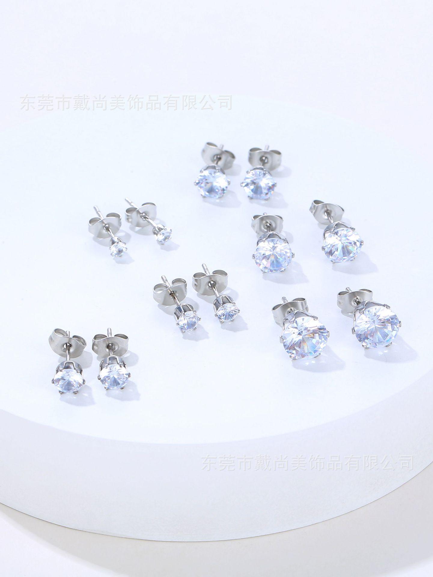 Pendientes de acero inoxidable con circonitas transfronterizas europeas y americanas, con corona y juego de piedras de seis garras, clavos de hueso para la oreja, para hombres y mujeres, con hebilla de mariposa, pequeños pendientes