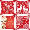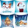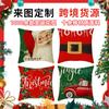 Cojín con patrón temático navideño de Amazon transfronterizo, cojín estampado de felpa corta de lino y algodón, decoración de ambiente navideño