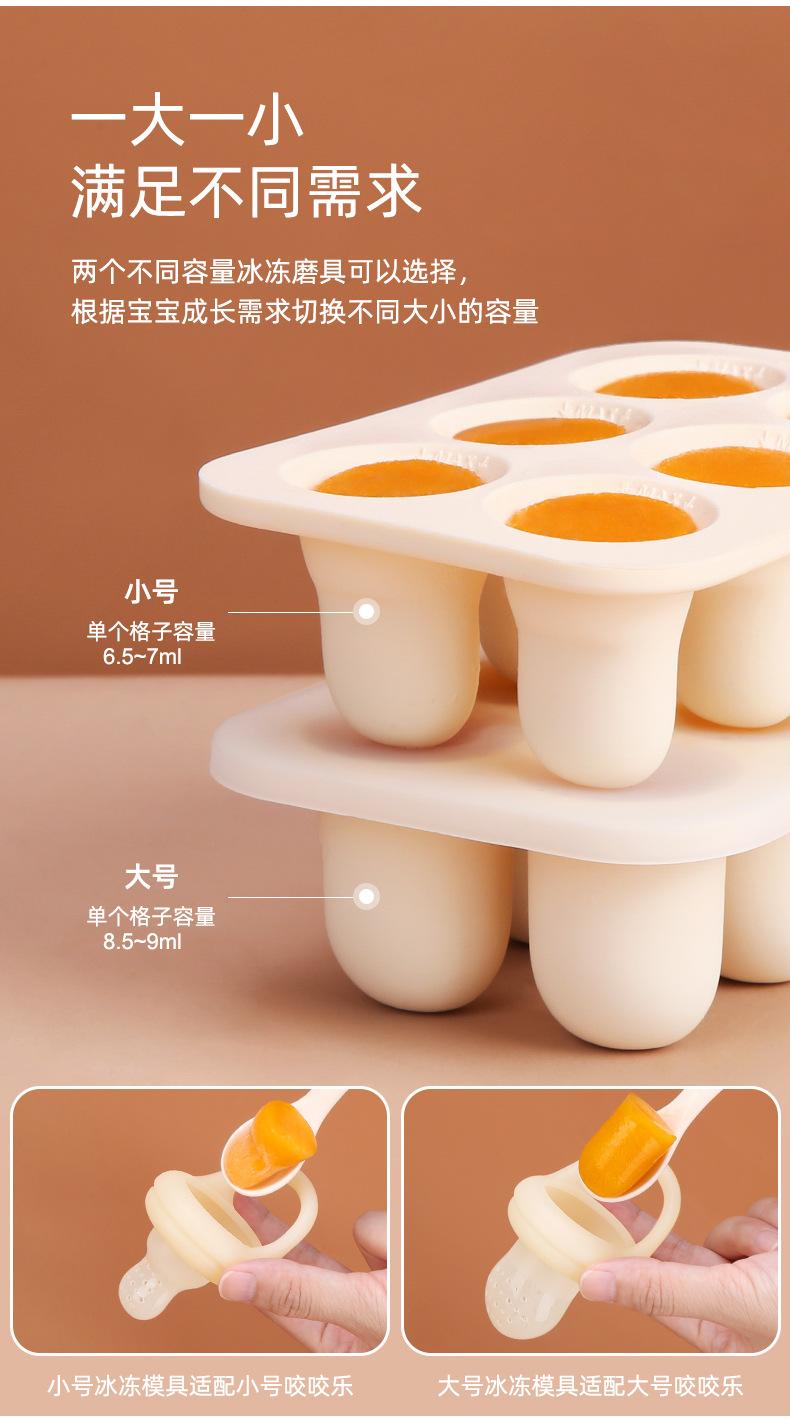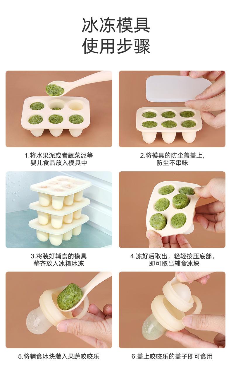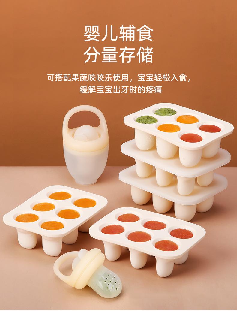 Nueva caja de suplemento alimenticio para bebés, molde congelado de silicona suave de múltiples rejillas para almacenamiento doméstico de alimentos de grado alimenticio, molde congelado con música para morder