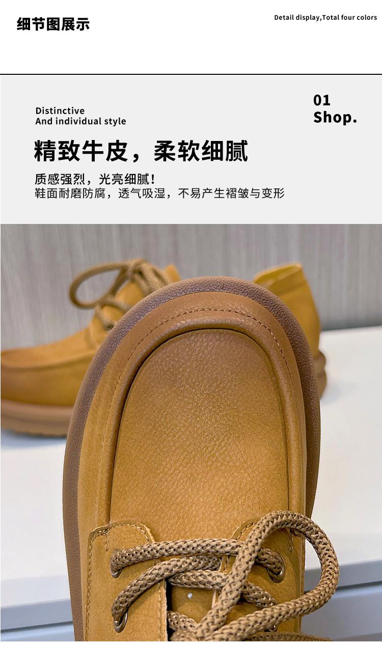 Botas de Nieve de Cuero Genuino con Tacón Oculto de 4.5cm para Mujer 2025 Invierno Nuevo Más Terciopelo Cálido Zapatos Individuales Casual Retro Zapatos de Mujer