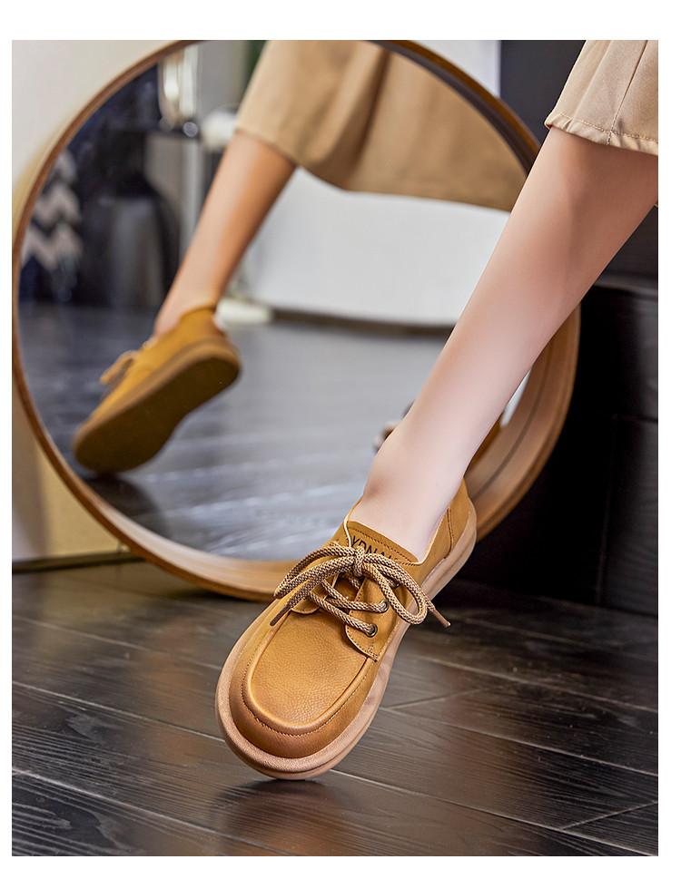 Zapatos de Mujer de Cuero Genuino 2026 Primavera Nuevo Retro Zapatos Pequeños de Cuero Casual Versátiles Zapatos Únicos Mocasines Planos de Mujer para Ir al Trabajo Zapatos de Mujer