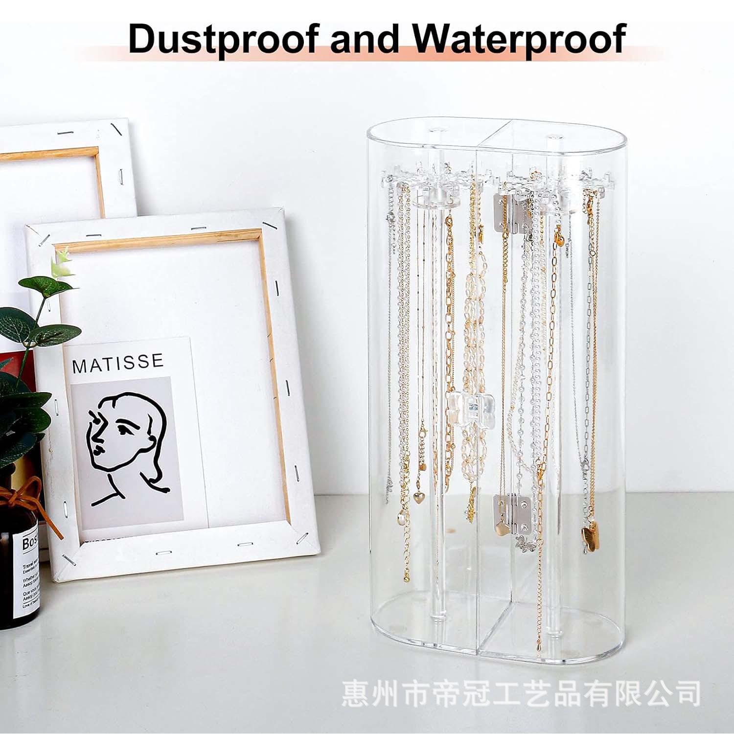 Estante de acrílico para collares, caja de almacenamiento transparente para collares con 24 ganchos, estante de exhibición giratorio para almacenamiento de joyas a prueba de polvo