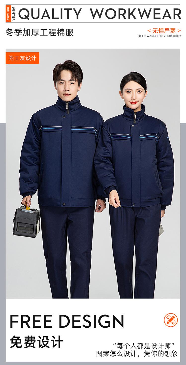 Abrigo de invierno acolchado de algodón con cuello alto, tira reflectante, multibolsillos, para hombre y mujer, chaqueta acolchada de algodón a prueba de frío, overol cálido, abrigo con LOGO bordado