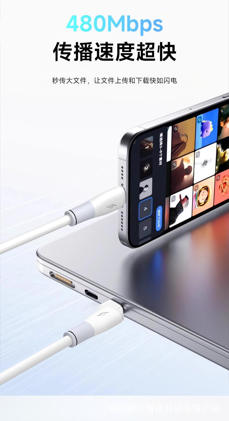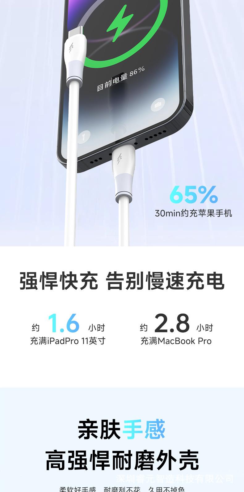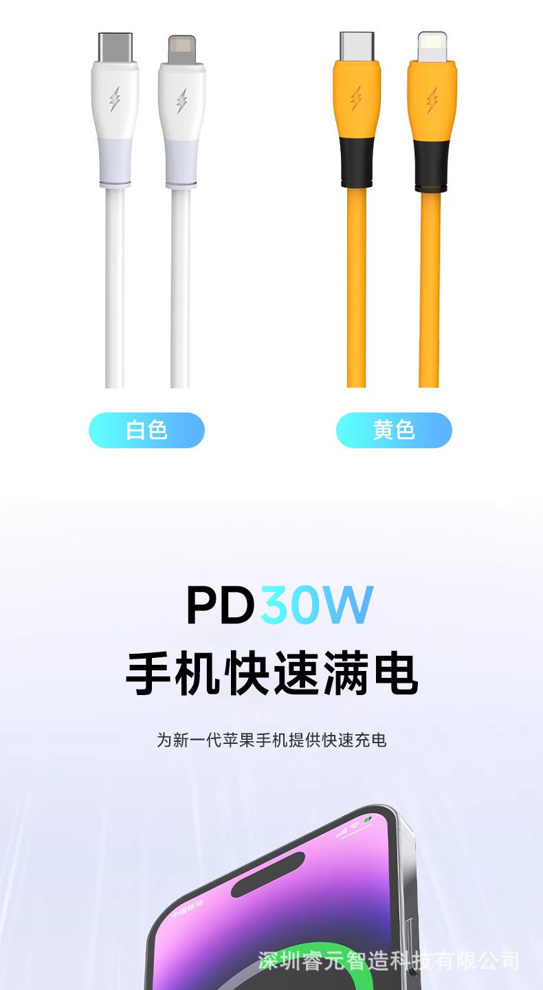 Cable de carga Tpe suave imitación silicona Pd30W Adecuado para teléfono móvil Apple Interfaz Tipo-C Cable de datos de carga rápida