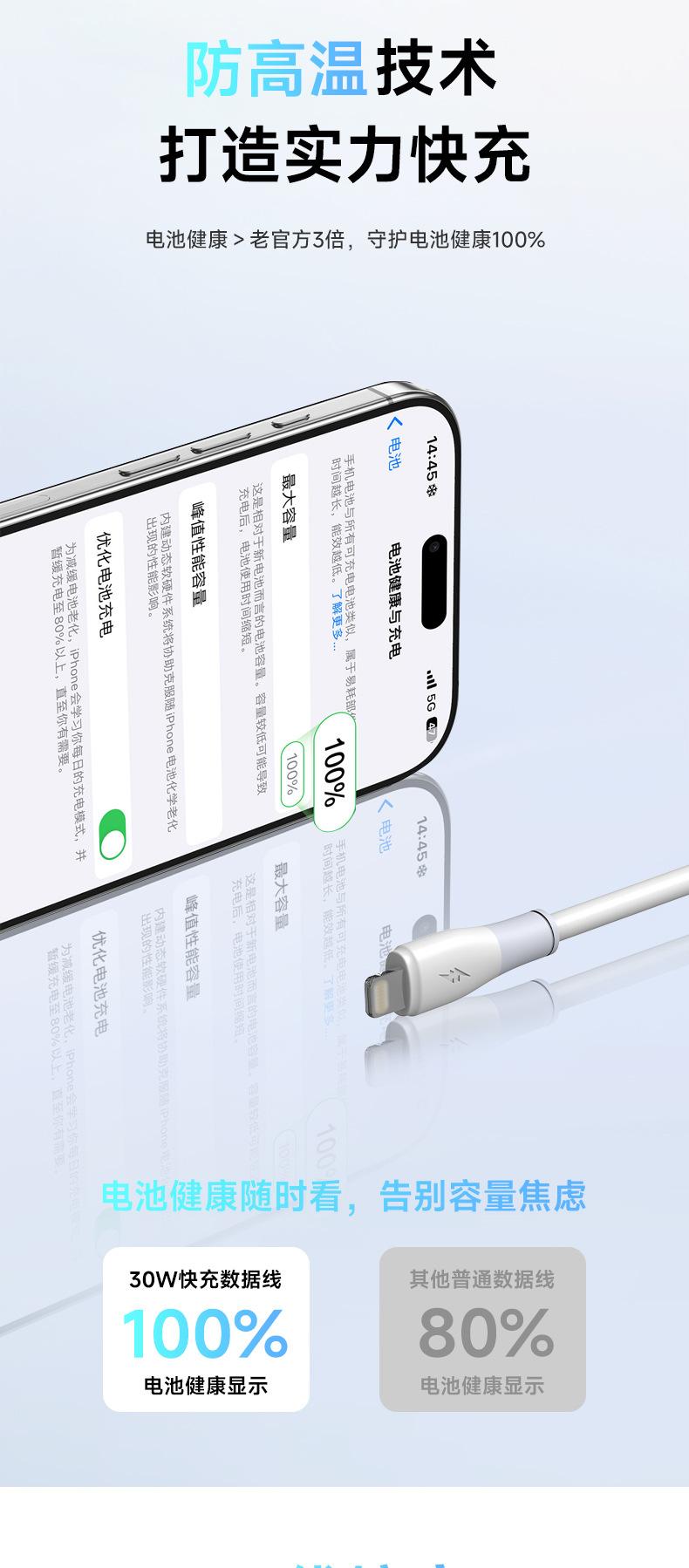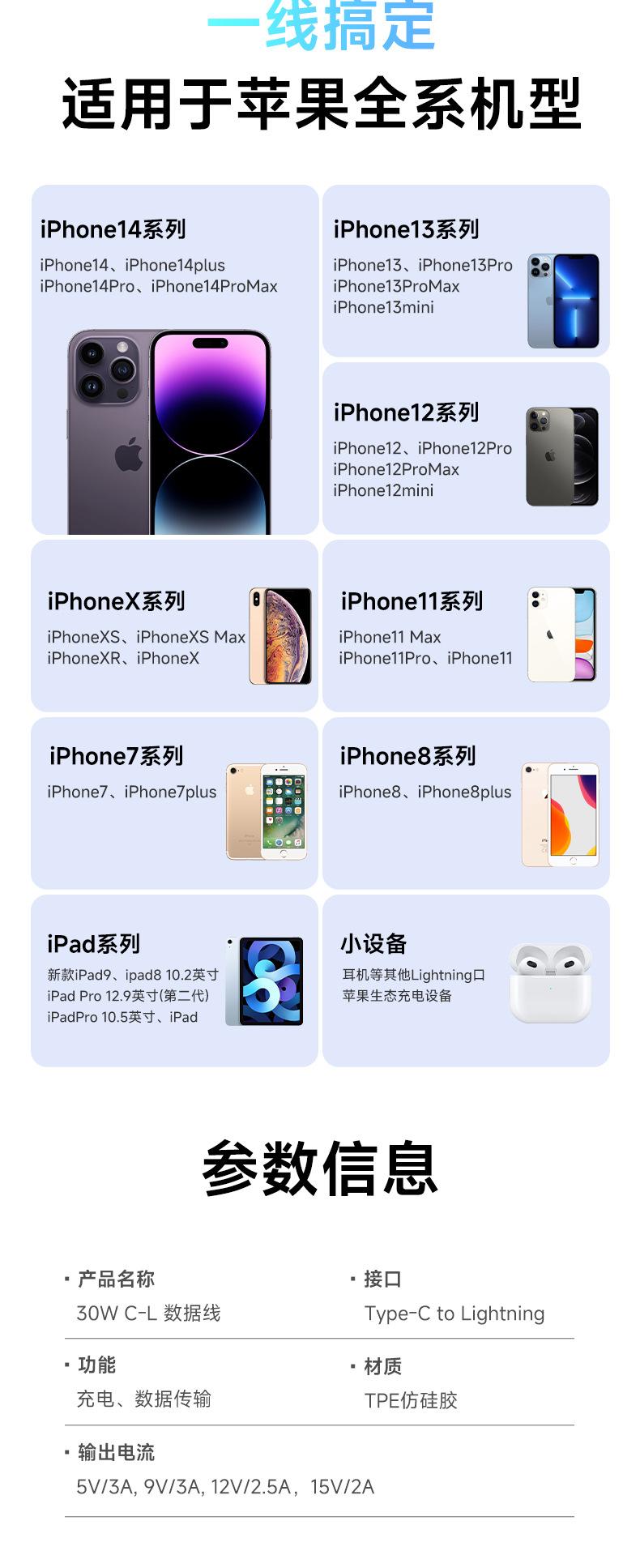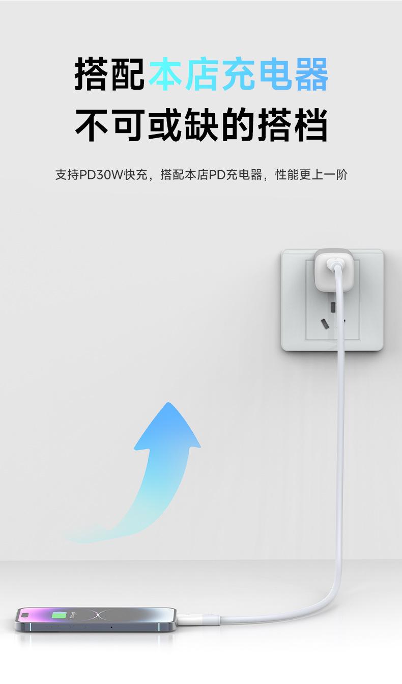 Cable de carga Tpe suave imitación silicona Pd30W Adecuado para teléfono móvil Apple Interfaz Tipo-C Cable de datos de carga rápida