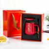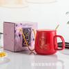 Taza de cerámica personalizada con tapa y cuchara, taza de agua para el hogar y la oficina, juego de regalo, taza, regalo práctico, publicidad