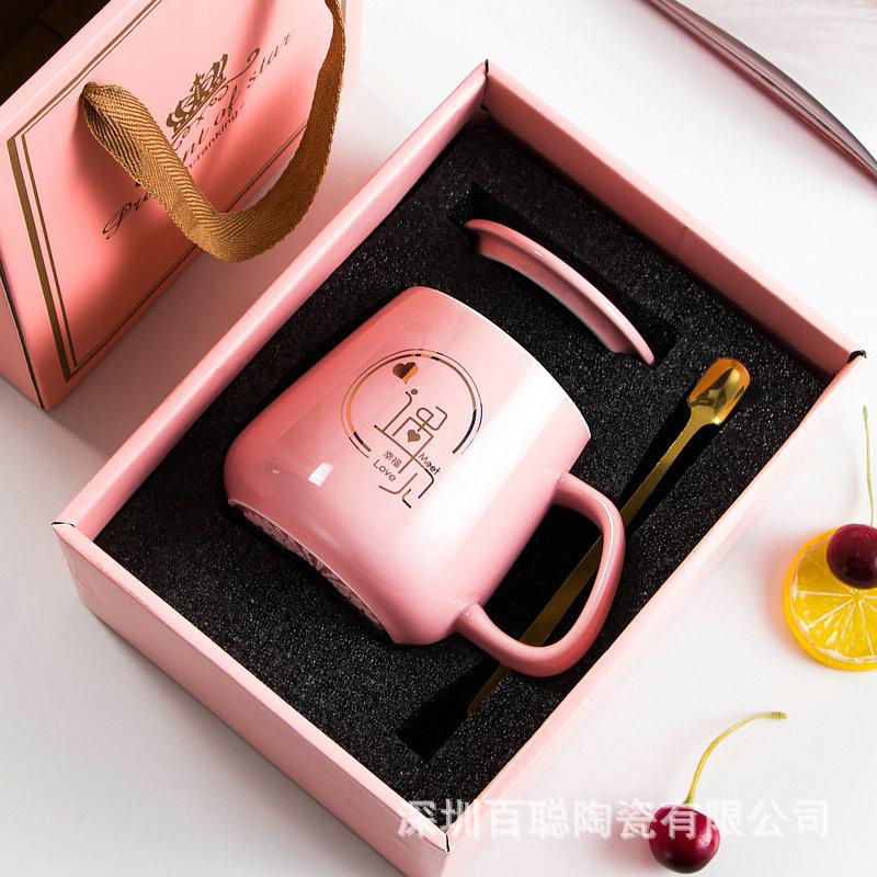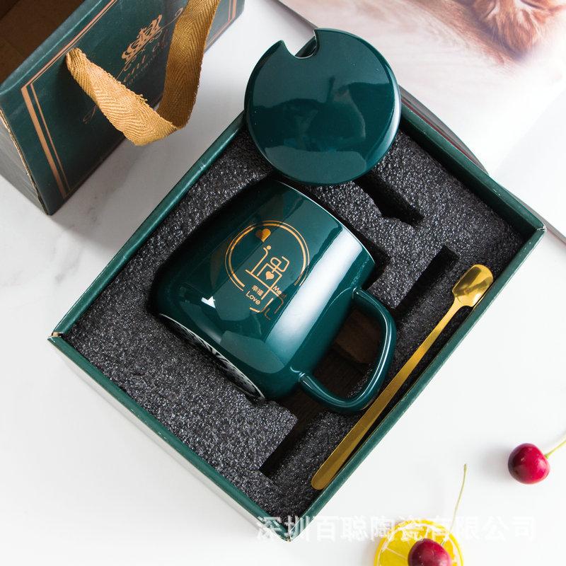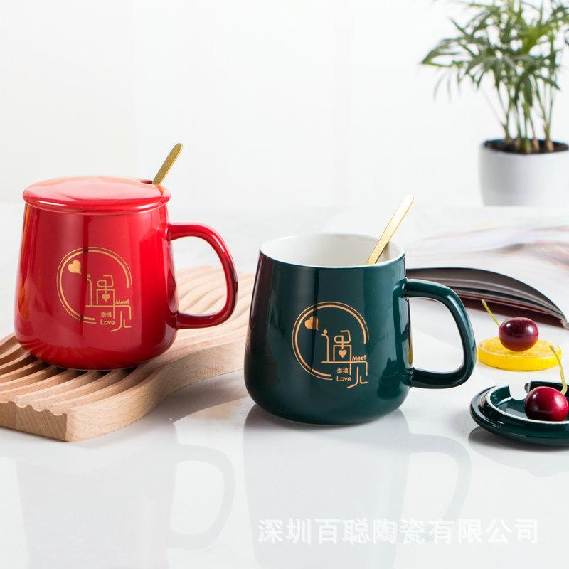 Compra Taza de cerámica personalizada con tapa y cuchara, taza de agua para el hogar y la oficina, juego de regalo, taza, regalo práctico, publicidad al por mayor en Joom.pro