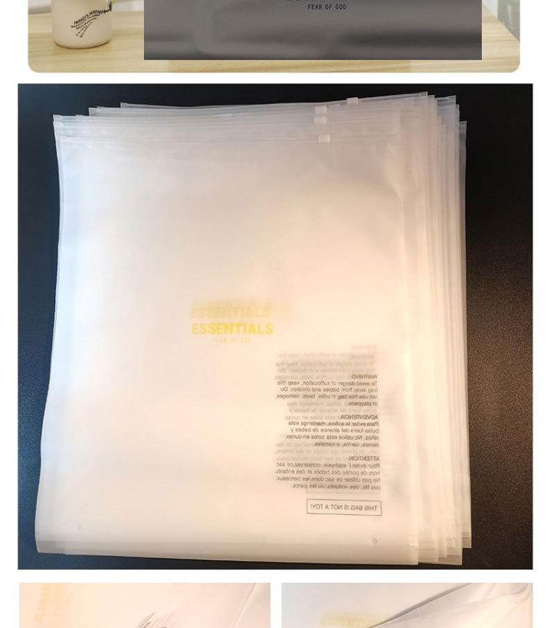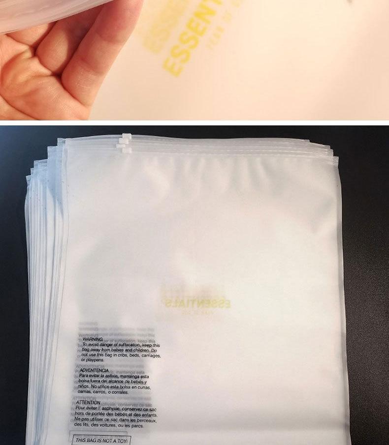 Bolsa de plástico transparente esmerilado con cremallera de PE para ropa ESS, bolsa Ziplock, bolsa de embalaje de papel Kraft, venta al por mayor