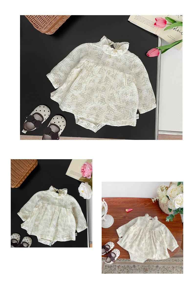 Mono de bebé recién nacido Luna Llena Otoño Bebé 100 días Manga Larga Cuello Alto Floral Vaina para un Año