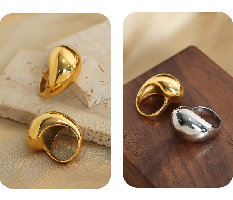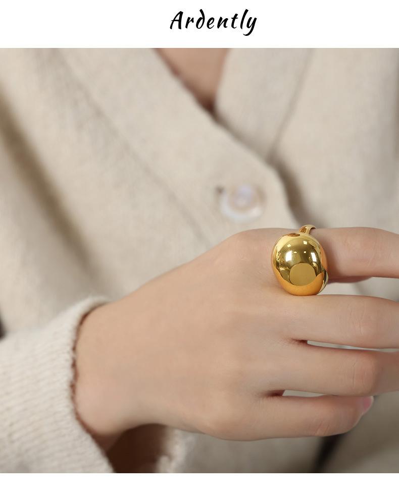 Compra Anillo esférico rechoncho de oro de 18 quilates de acero de titanio de estilo frío de moda de Hong Kong para mujer, diseño de nicho sin decoloración, venta al por mayor al por mayor en Joom.pro
