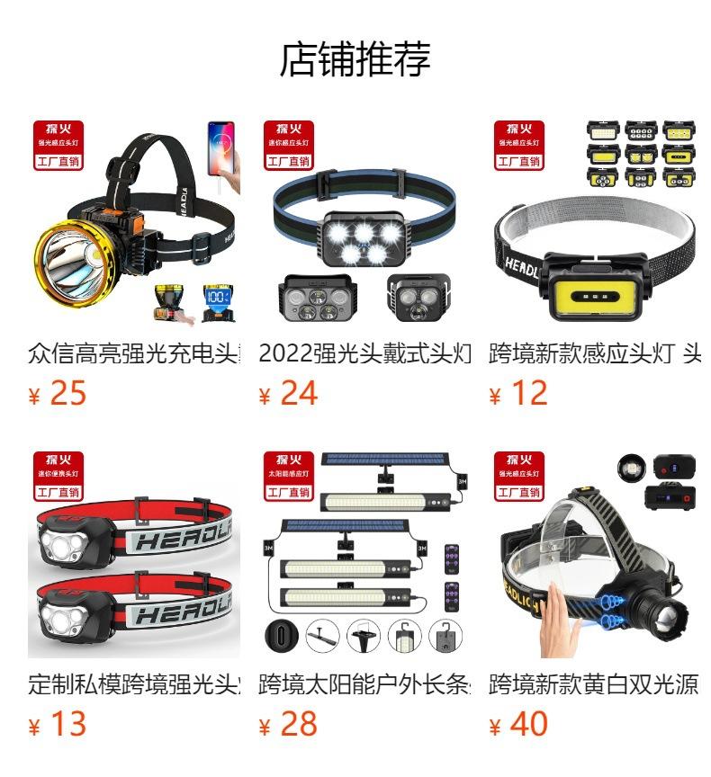 Personalizado Transfronterizo Nuevo Montado en la Cabeza Carga Luz Fuerte Alto Brillo Pesca Linterna Sensor LED Faro Batería de Duración Ultralarga
