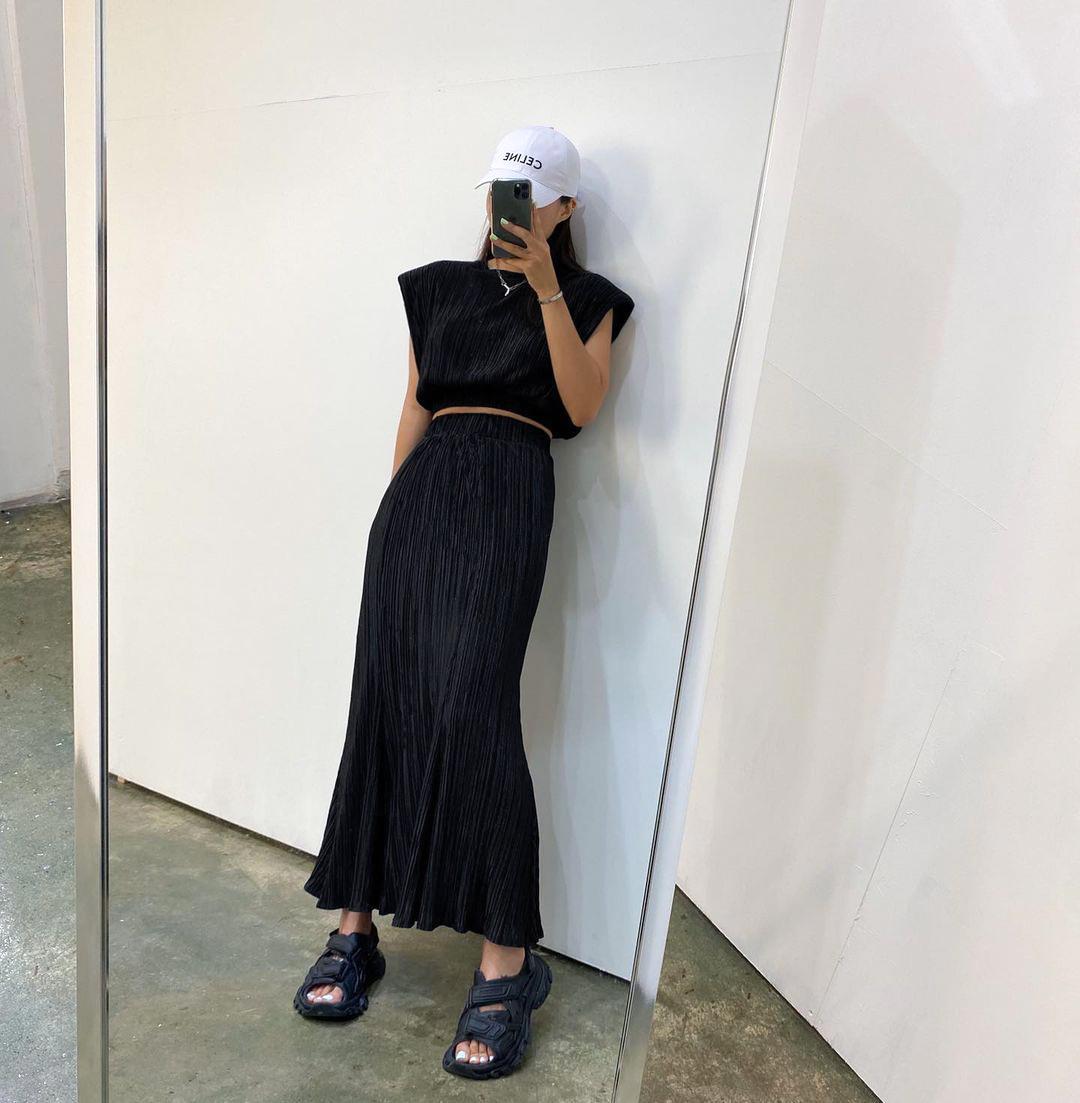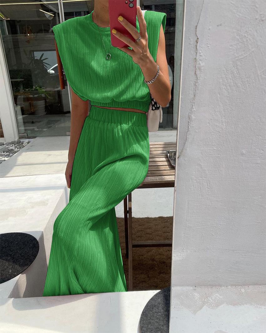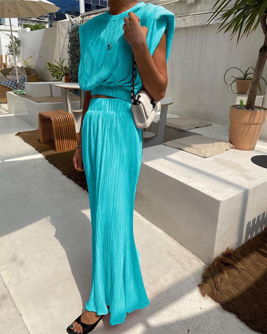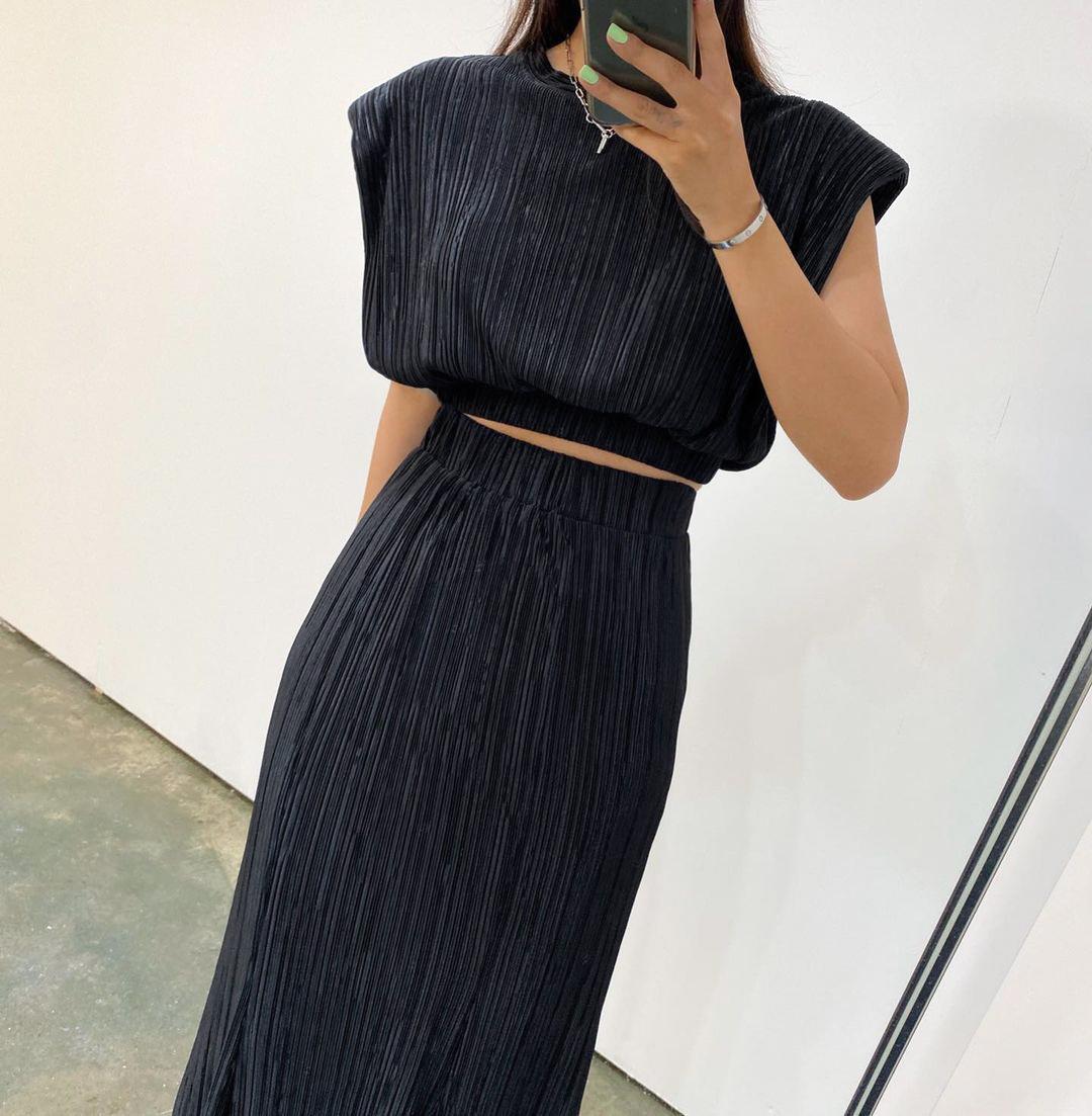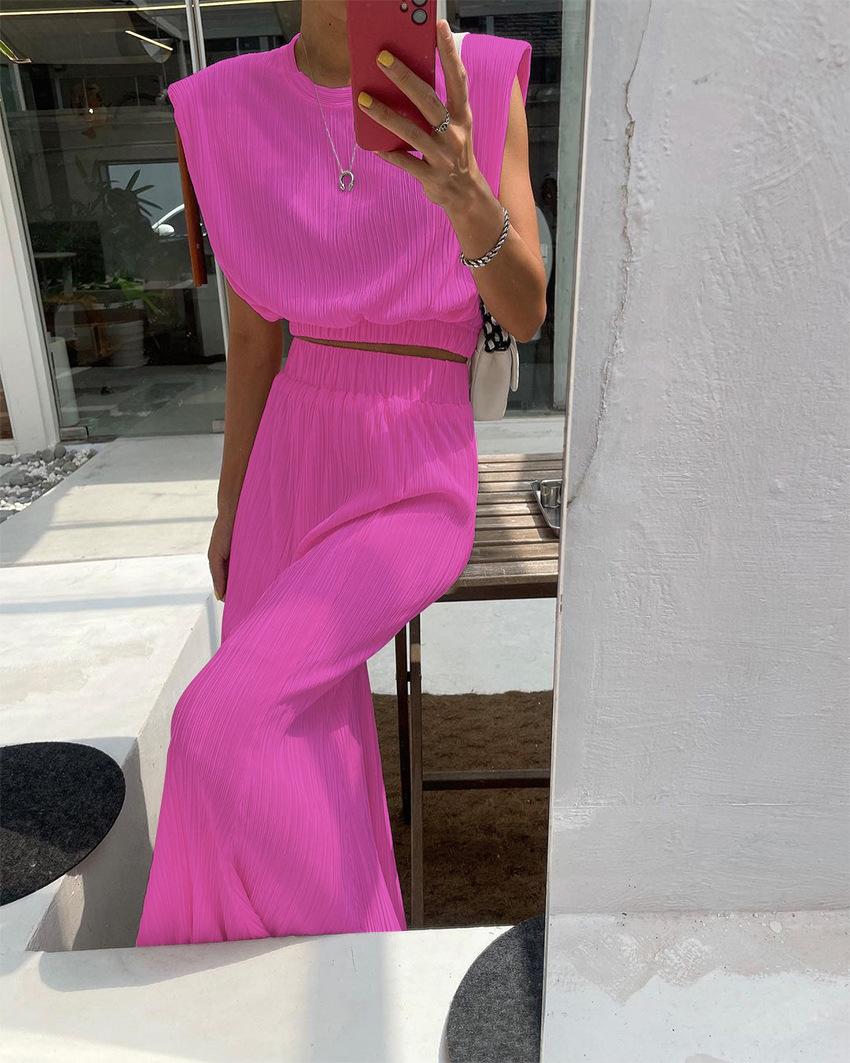 Conjunto de dos piezas plisado elegante e informal de moda europea y americana, novedad de verano 2023, chaleco con hombreras, falda y vestido para mujer