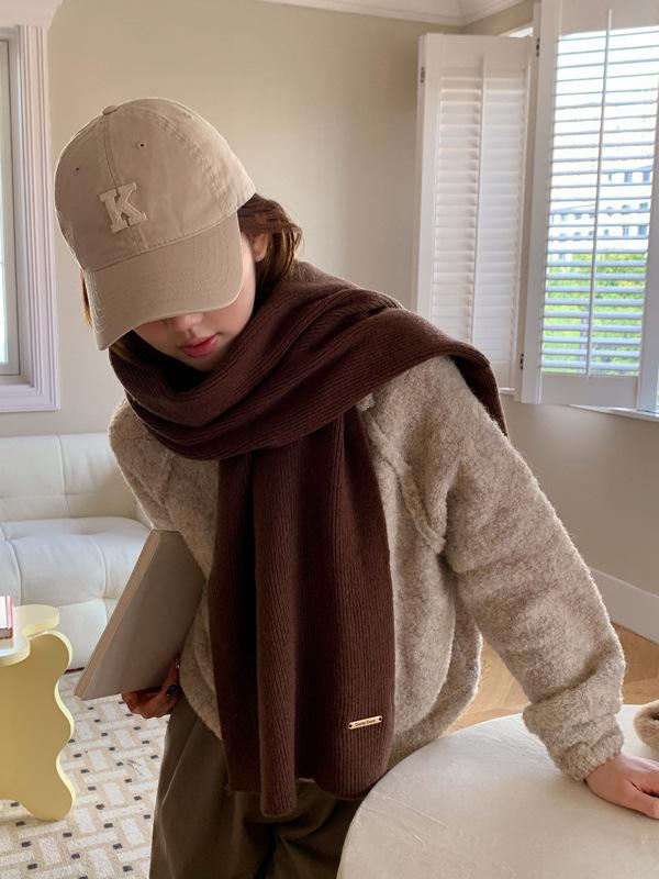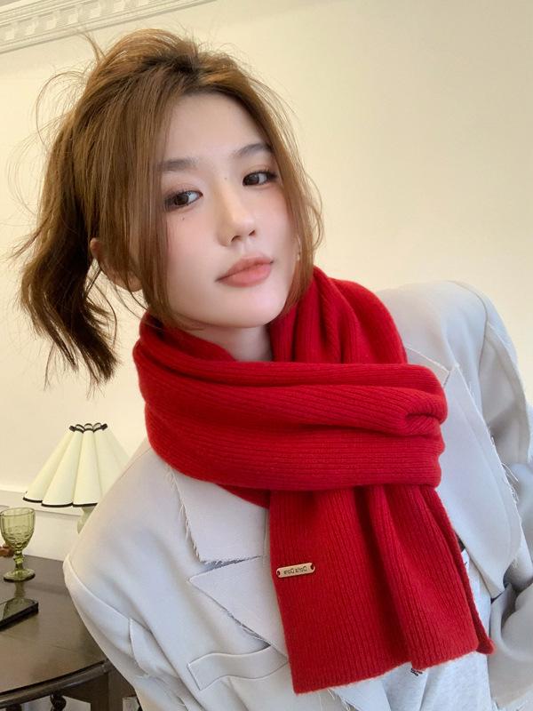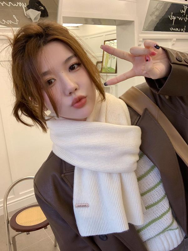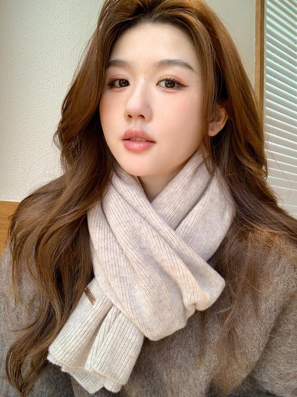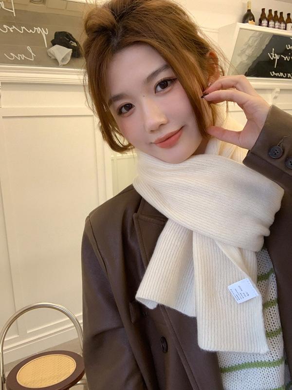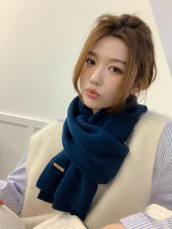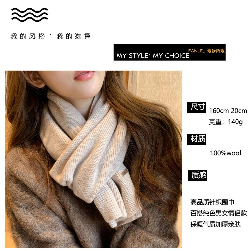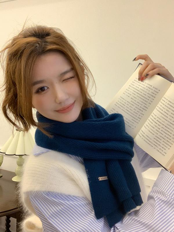 Bufanda 100% de lana para mujer, de invierno, gruesa, para estudiantes, cálida, para parejas, larga, versátil, de color sólido, de punto, de cachemir para hombres.