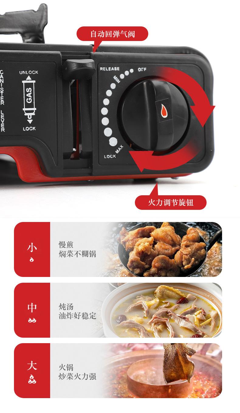 Estufa de picnic de un solo uso, estufa de gas butano, estufa de gas, estufa de gas, estufa de tarjeta con válvula de rebote automática para exteriores familiar