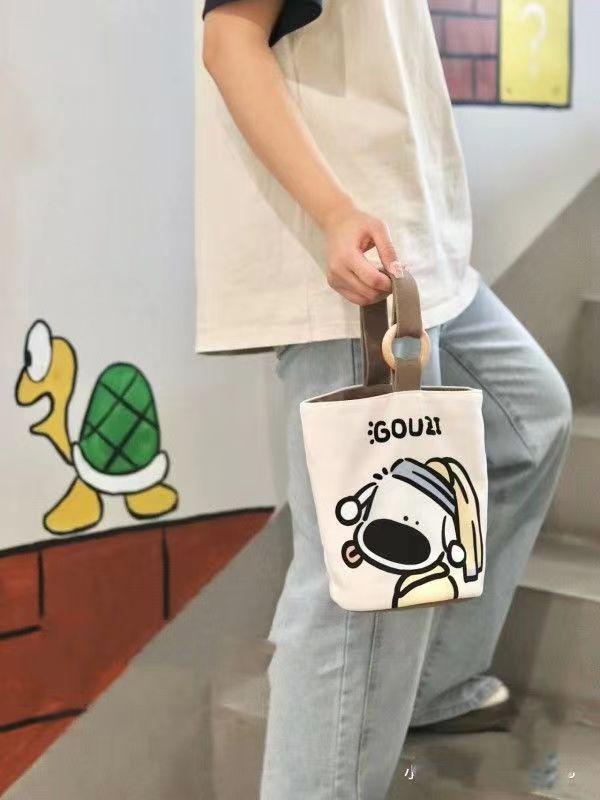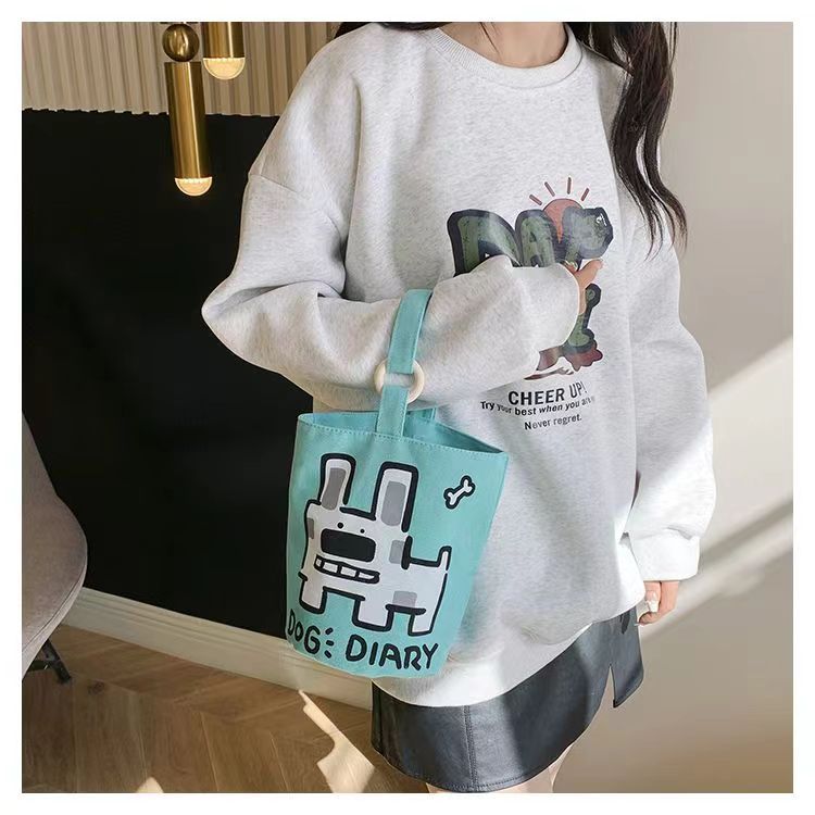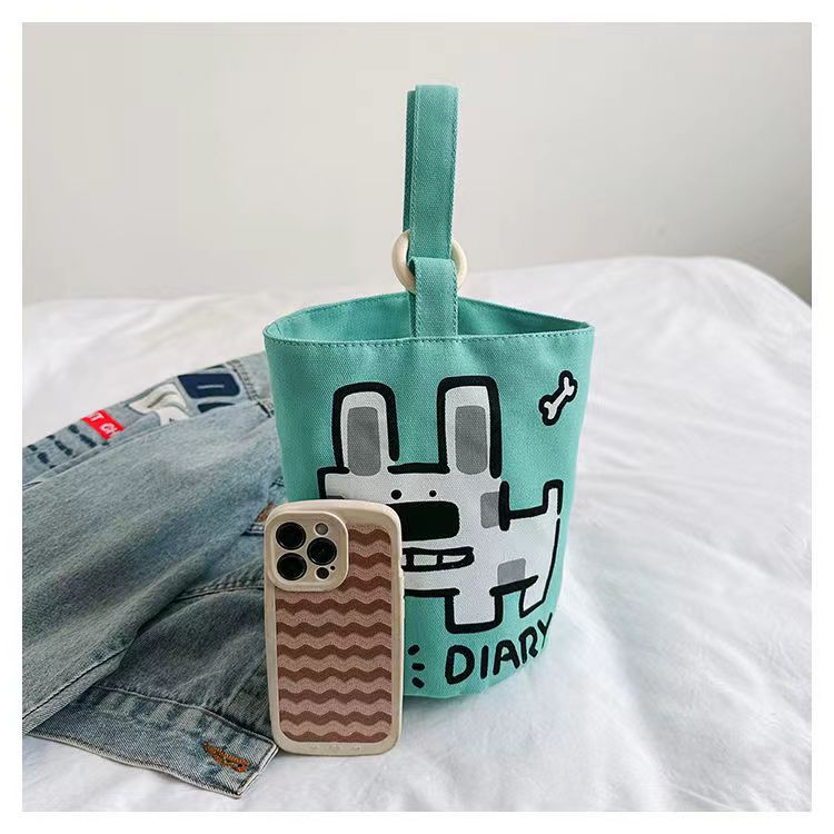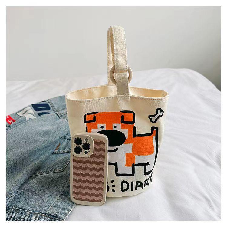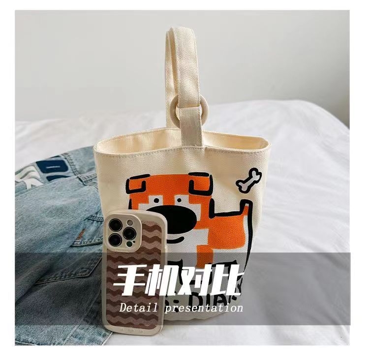 Bolso de Mano Conveniente al Por Mayor para Trabajadores de Oficina para Trasladarse al Trabajo, Bolso de Cubo de Lona con Viento Dopamínico Dulce y Lindo, Bolsa de Almacenamiento para Lonchera