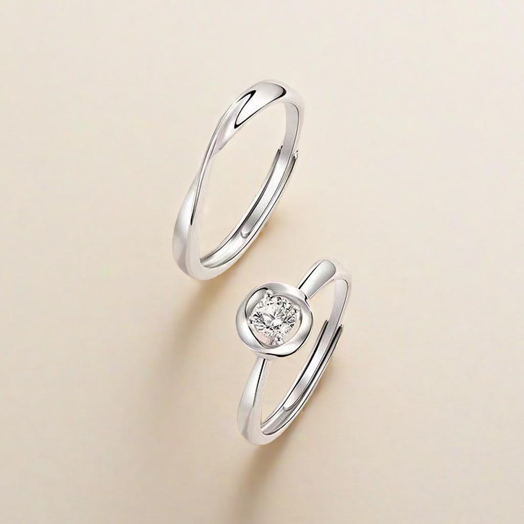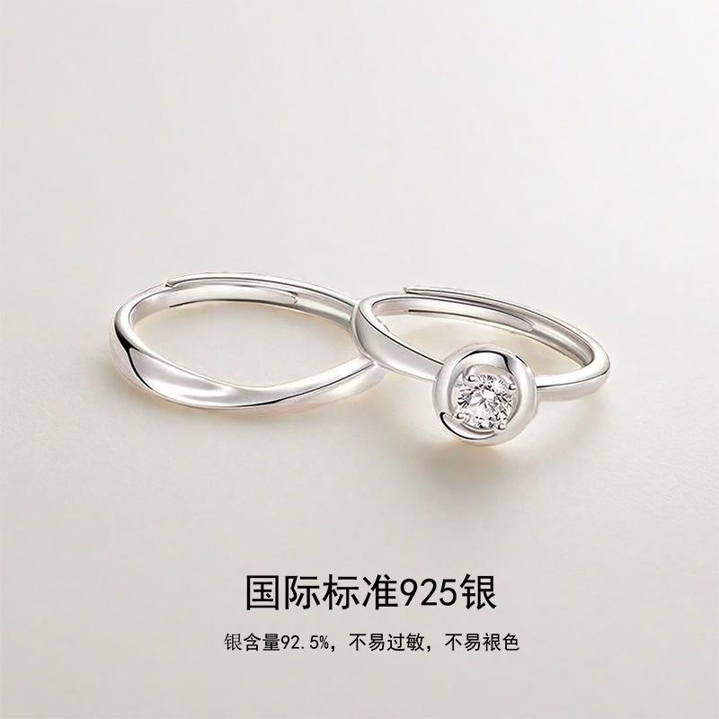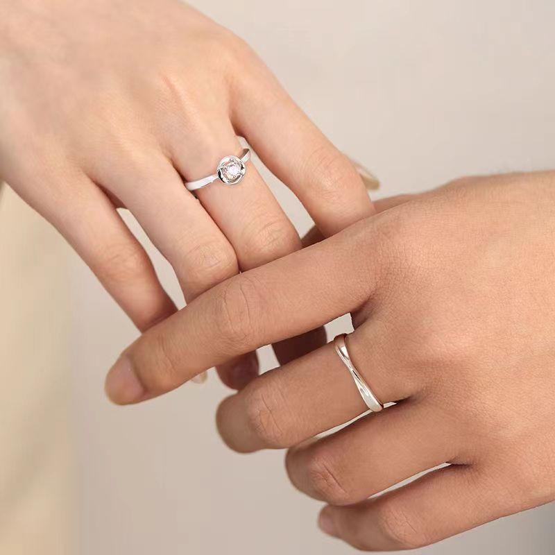 Anillo de lazo de corazón de plata esterlina S925, anillo de pareja abierto para hombres y mujeres, diseño de nicho simple de alto sentido, venta al por mayor