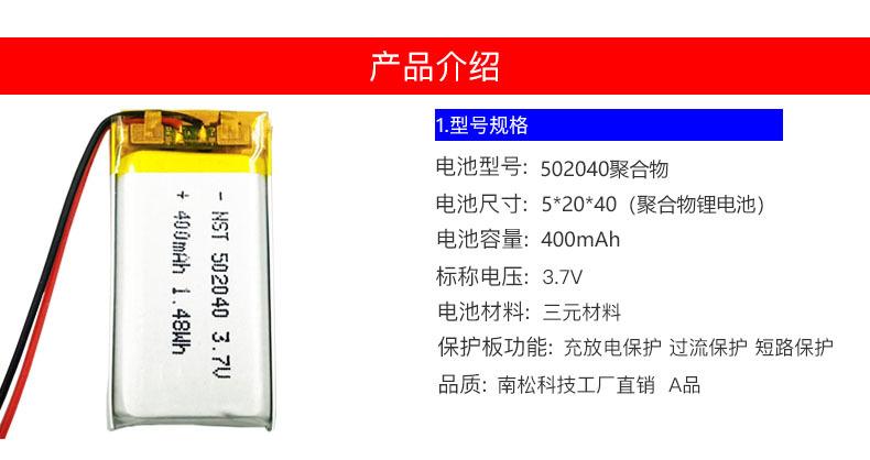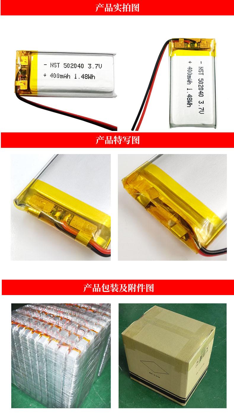 Batería recargable de polímero de litio 502 040 de 400 mAh, instrumento de belleza de alta calidad, fabricantes estables.