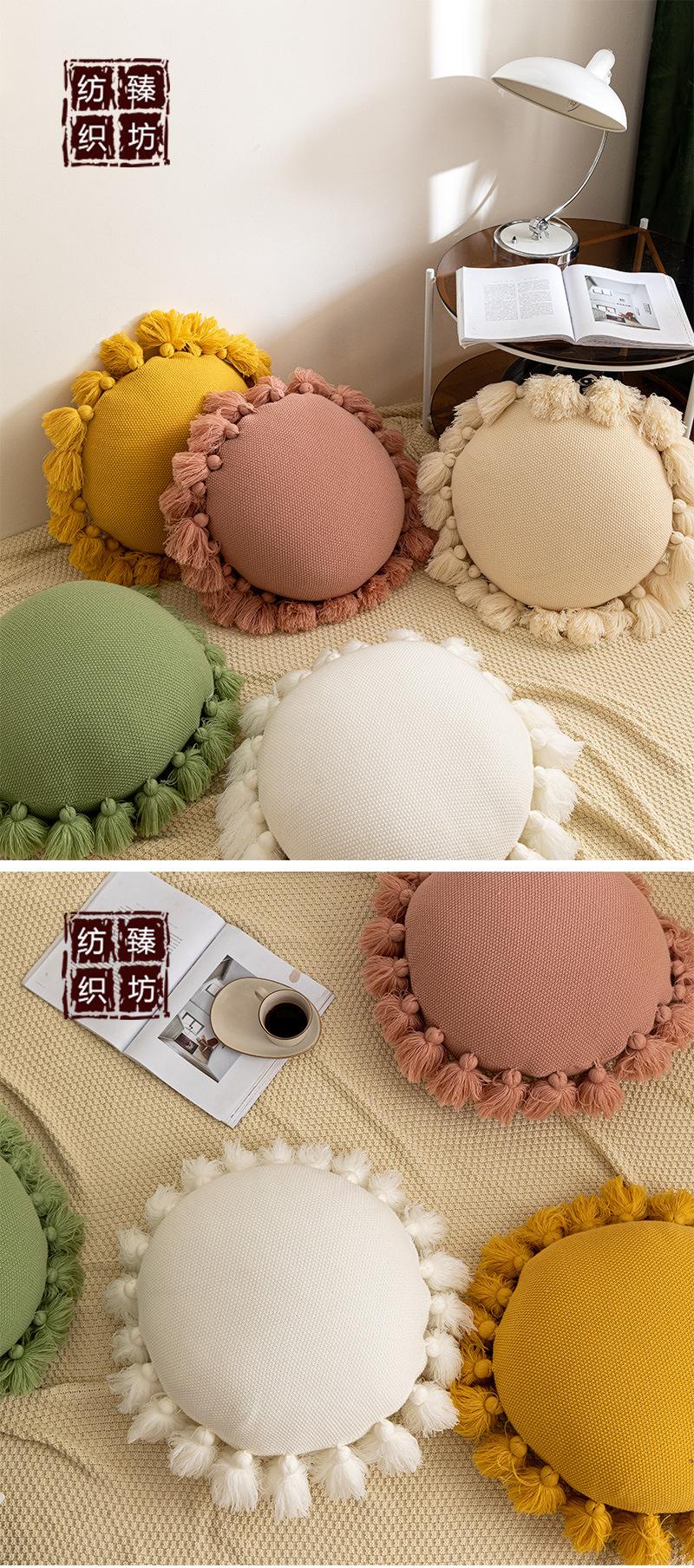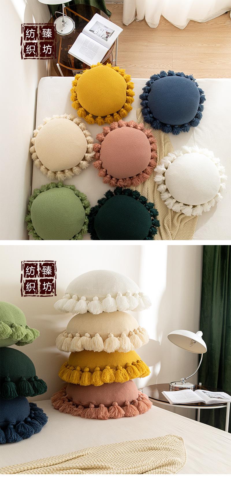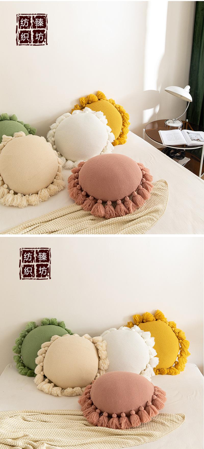 Cojín redondo con borlas estilo ins, bonito, para sofá, coche, cama, accesorios para fotos.