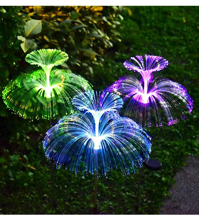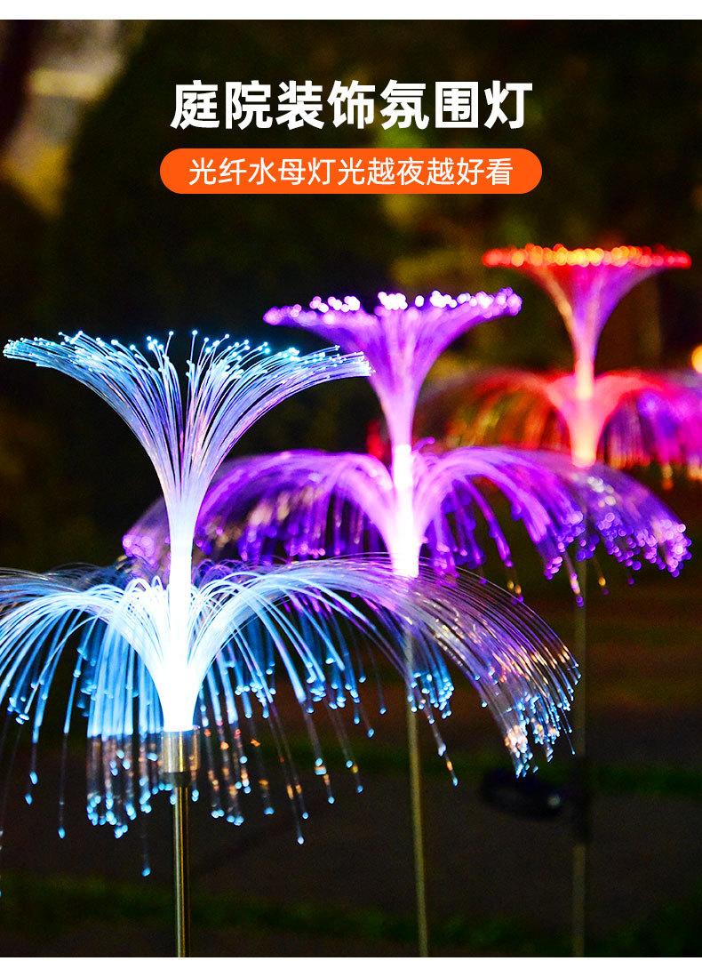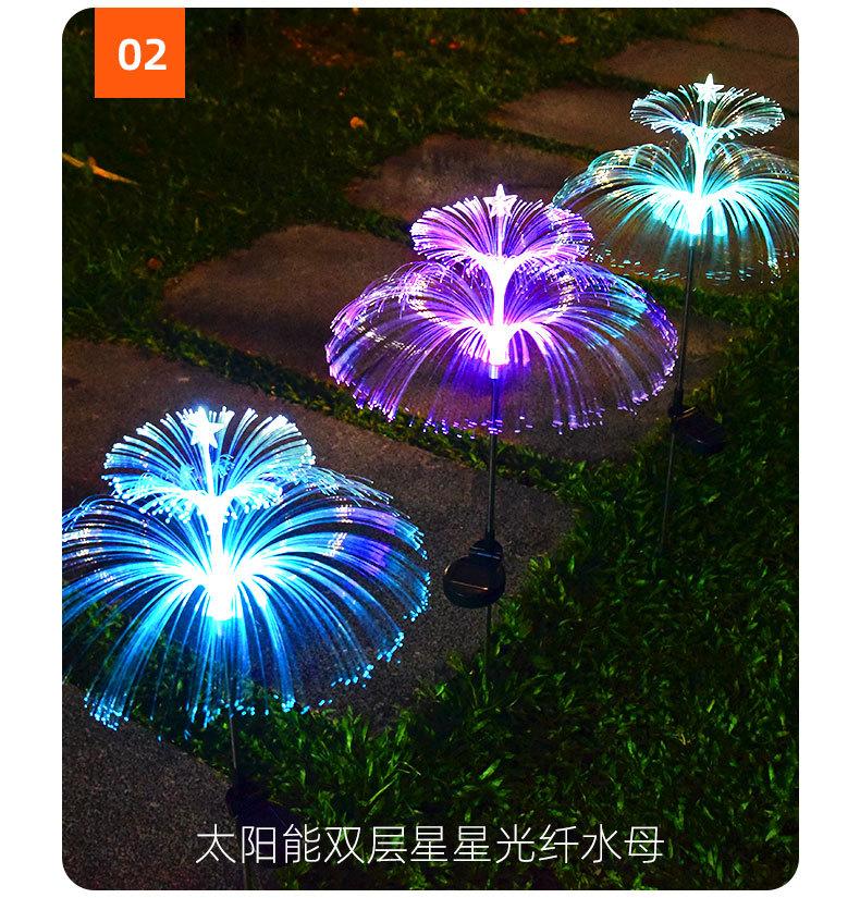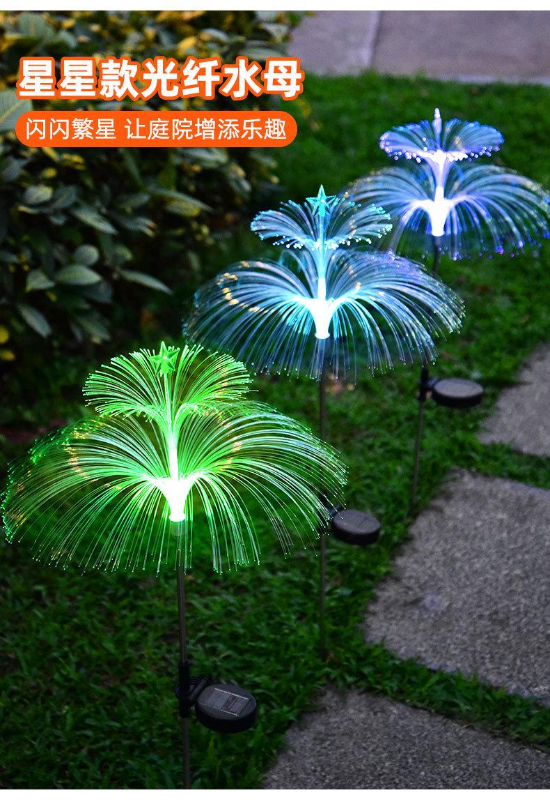 Luz de Suelo de Medusa de Fibra Óptica Solar LED Luz Decorativa para Patio al Aire Libre Luz de Césped Panel Solar Impermeable IP65