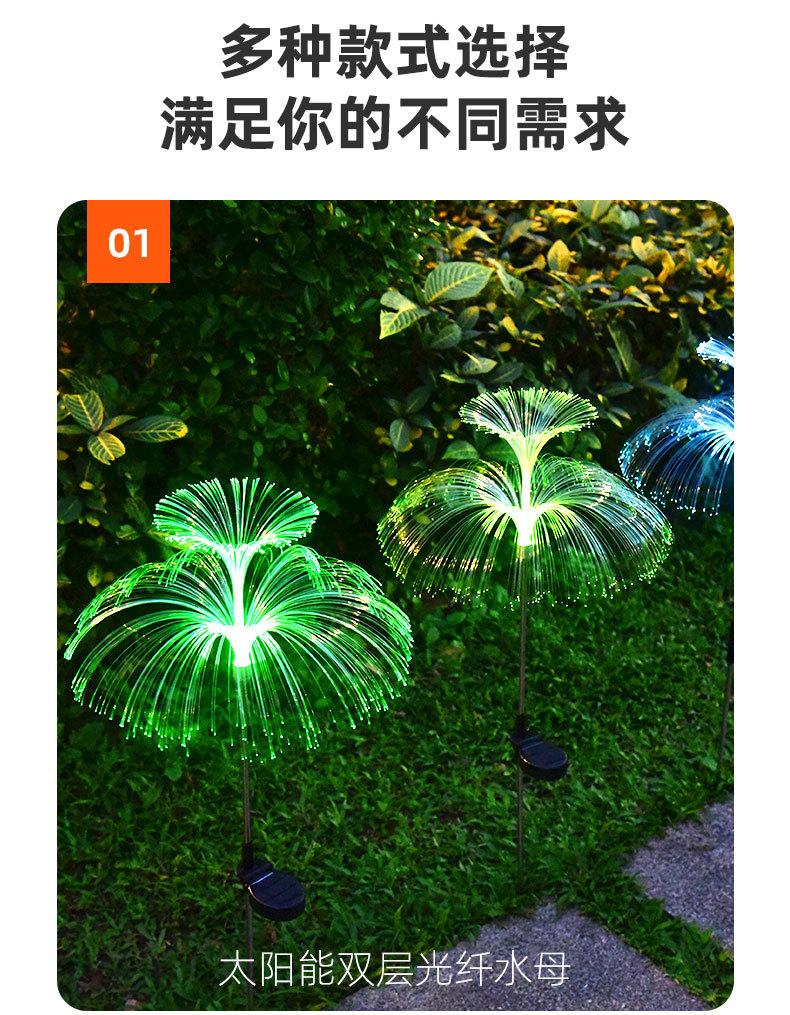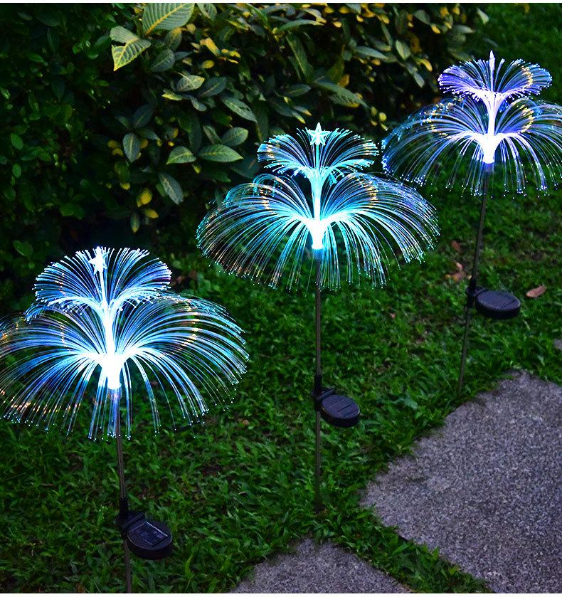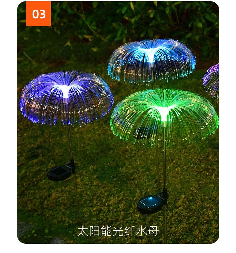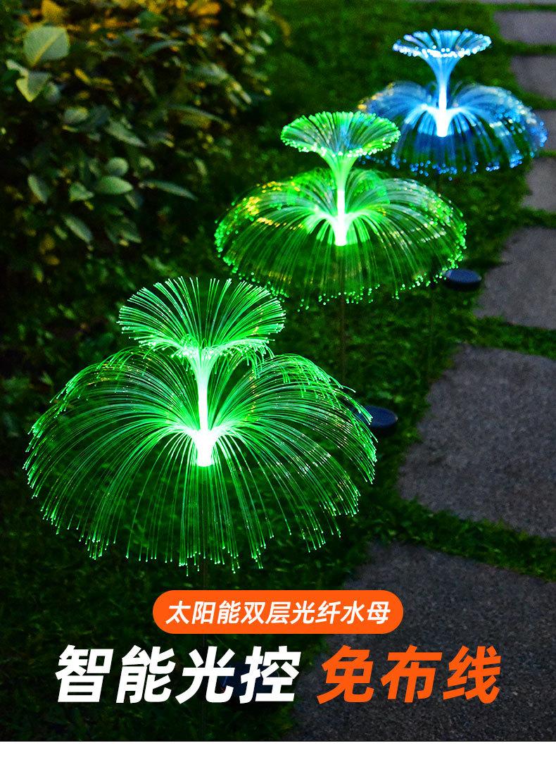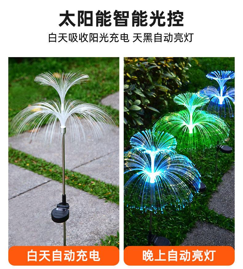Luz de Suelo de Medusa de Fibra Óptica Solar LED Luz Decorativa para Patio al Aire Libre Luz de Césped Panel Solar Impermeable IP65