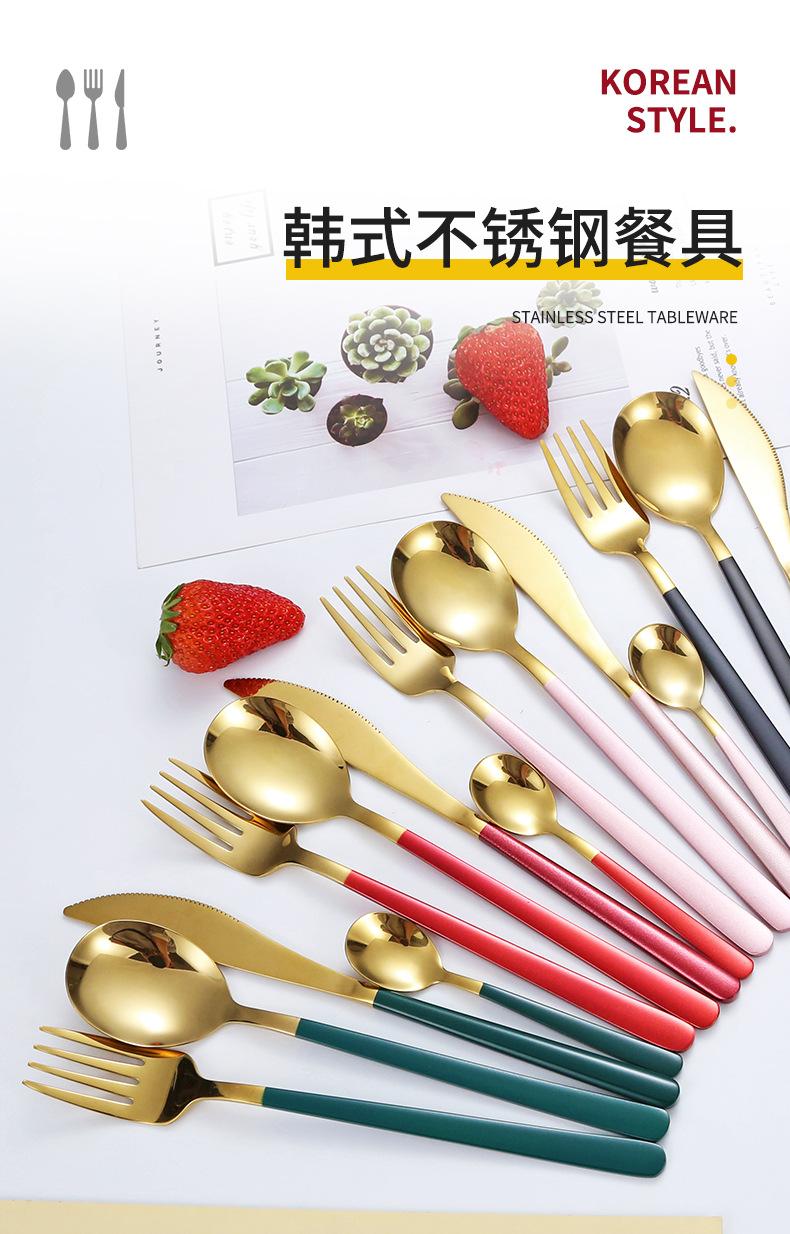 Juego de cuchillo y tenedor de acero inoxidable 304 de estilo coreano, vajilla occidental para hotel, cuchillo y tenedor para carne, cuchara de café para el hogar, cuchara de postre