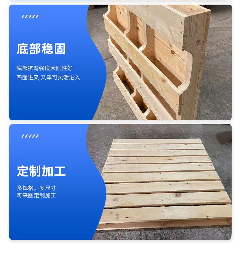 Pallet de madera de pino de Qingdao fumigación IPPC exportación fumigación pallet de madera horquilla de cuatro lados almacenamiento rotación pallet de madera