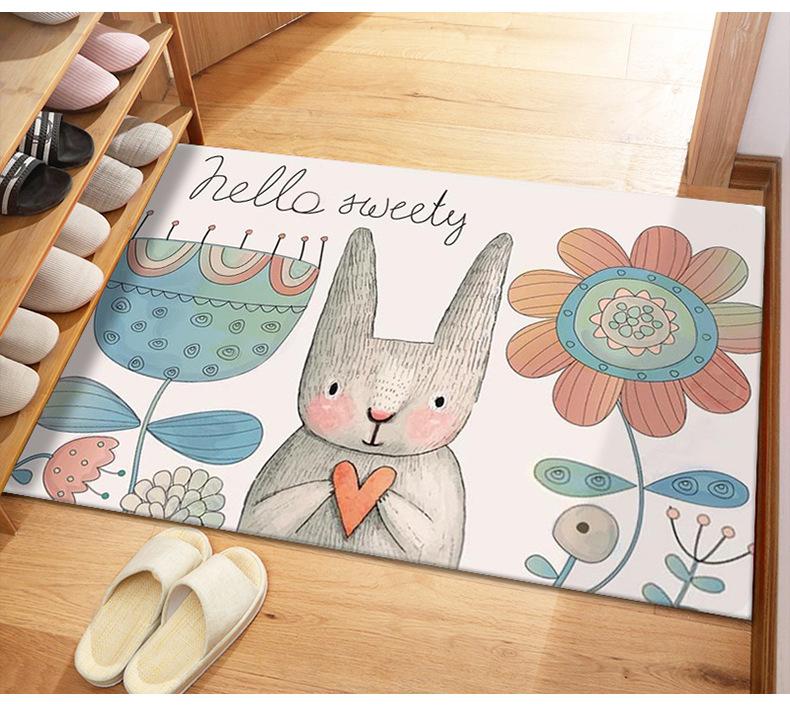 Crystal velvet cartoon entrance door mat-small gray rabbit