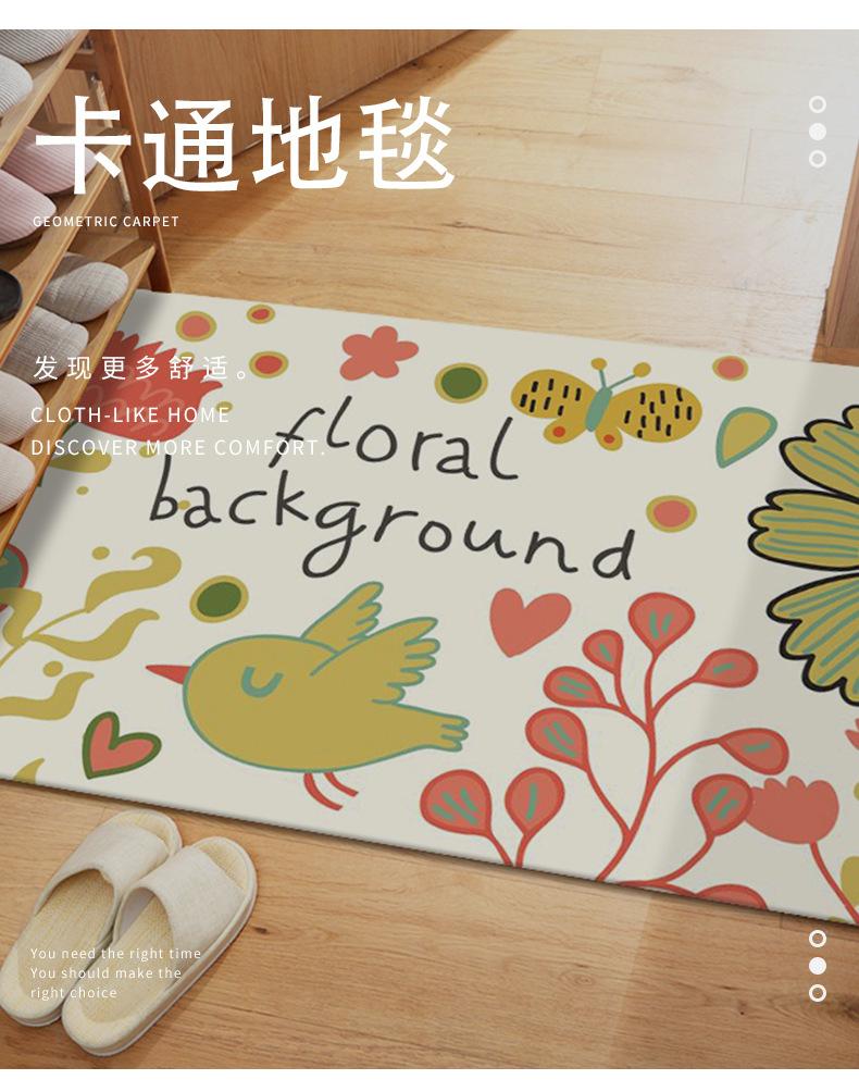 Crystal velvet cartoon entrance door mat-birds and flowers II