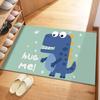 Crystal velvet cartoon entrance door mat-blue dinosaur