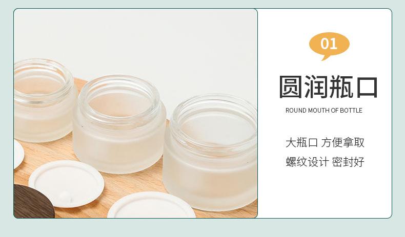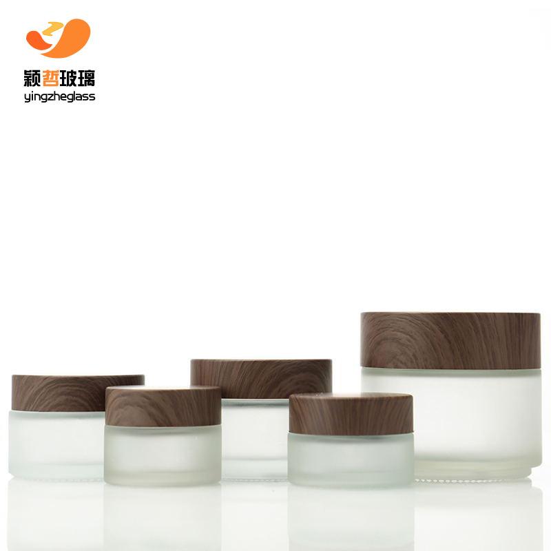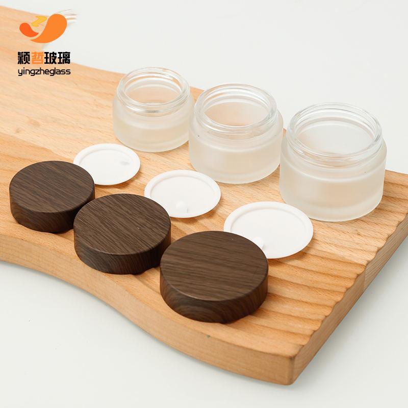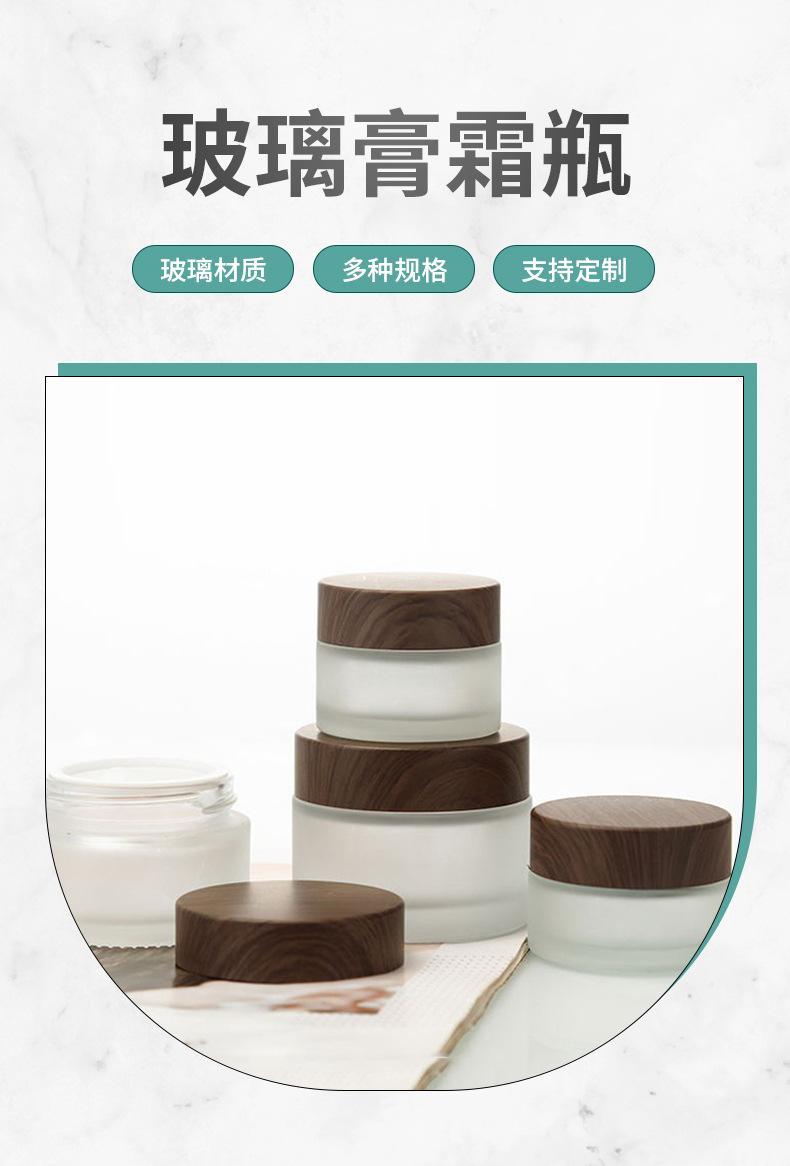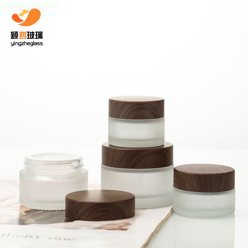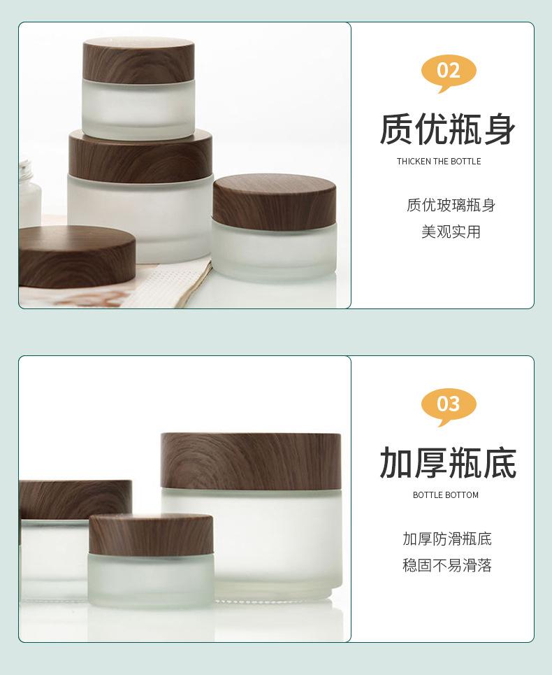 Botella de crema con cubierta de veta de madera con transferencia de agua negra esmerilada de 20 g, botella de crema, sublata de vidrio de 30 g, botella de mascarilla de 100 g