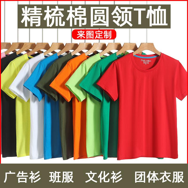 Compra Camiseta de algodón peinado con cuello redondo, impresión personalizada de logotipo, ropa de clase grupal, publicidad corporativa, camisa cultural, mono de manga corta al por mayor en Joom.pro