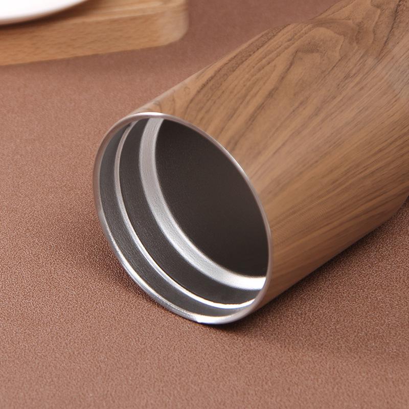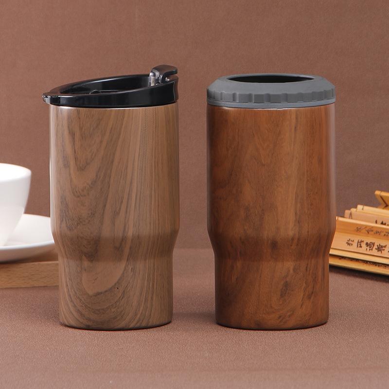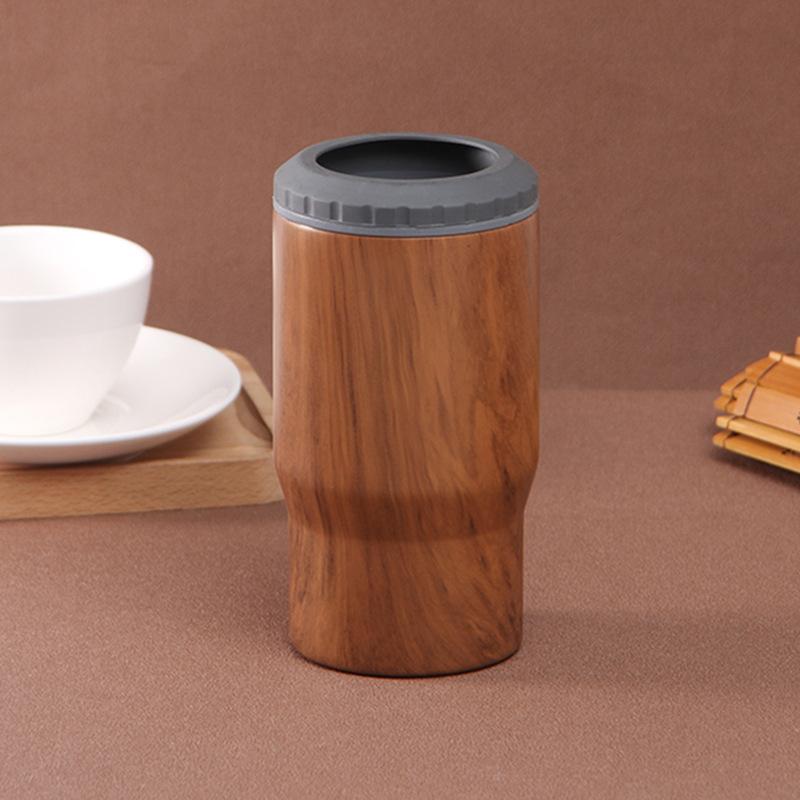 Jarra de cerveza de acero inoxidable de 14 oz, nueva y transfronteriza, creativa, con textura de madera, tanque de conservación en frío, taza de hielo de doble vacío, regalo al por mayor