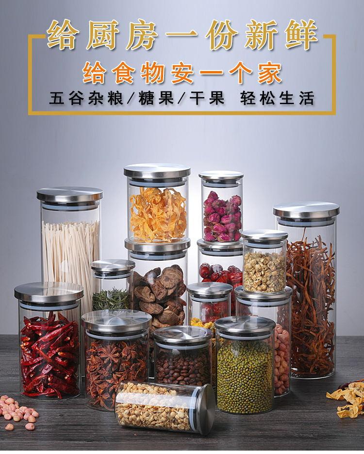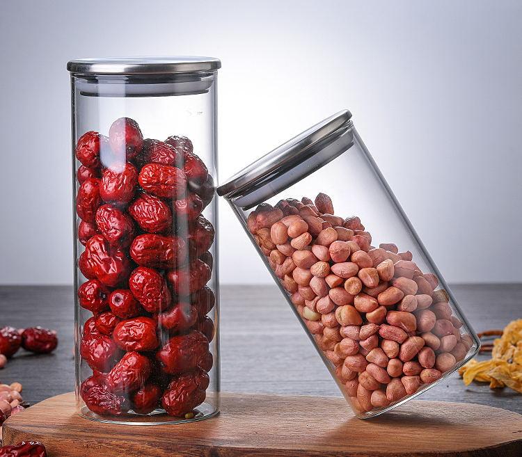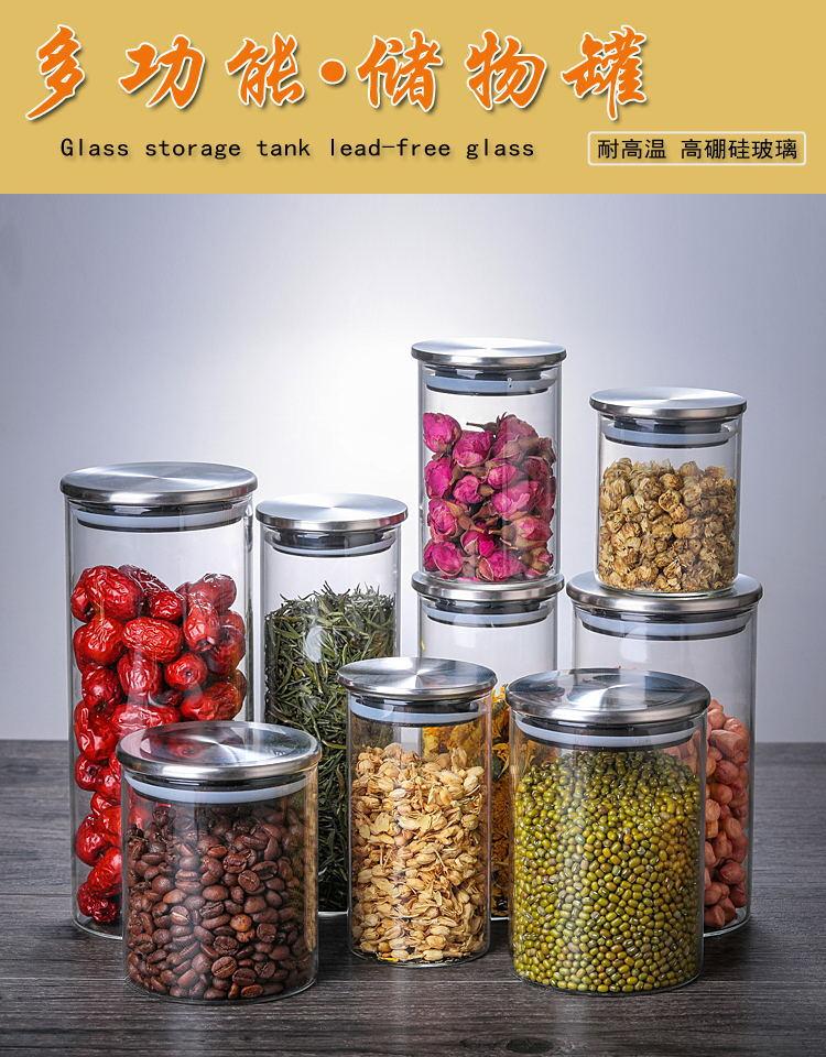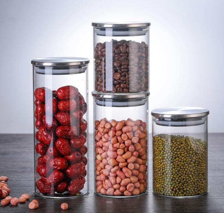 Frasco de Vidrio Sellado con Tapa de Acero Inoxidable, Tarro de Té, Tarro de Almacenamiento de Alimentos Granulados de Cocina, Botella de Vidrio Simple para Conservar Fresco