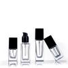 En stock, botella de base líquida de 30 ml, botella de loción, botella de crema aislante, botella de fondo grueso, botella de esencia, botella de vidrio para el cuidado de la piel.