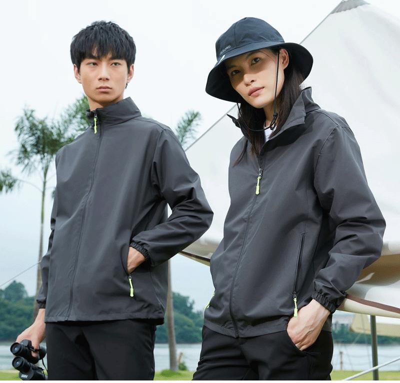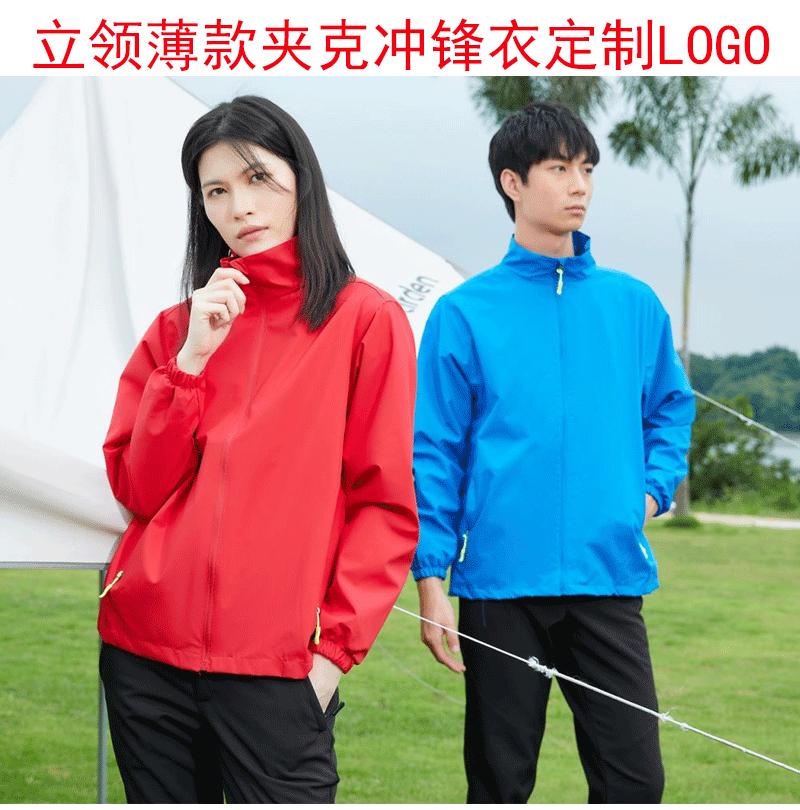 Chaqueta de cuello alto, Chaqueta delgada con logo personalizado, Ropa de trabajo impermeable y a prueba de viento para exteriores de estilo personalizado para hombres y mujeres
