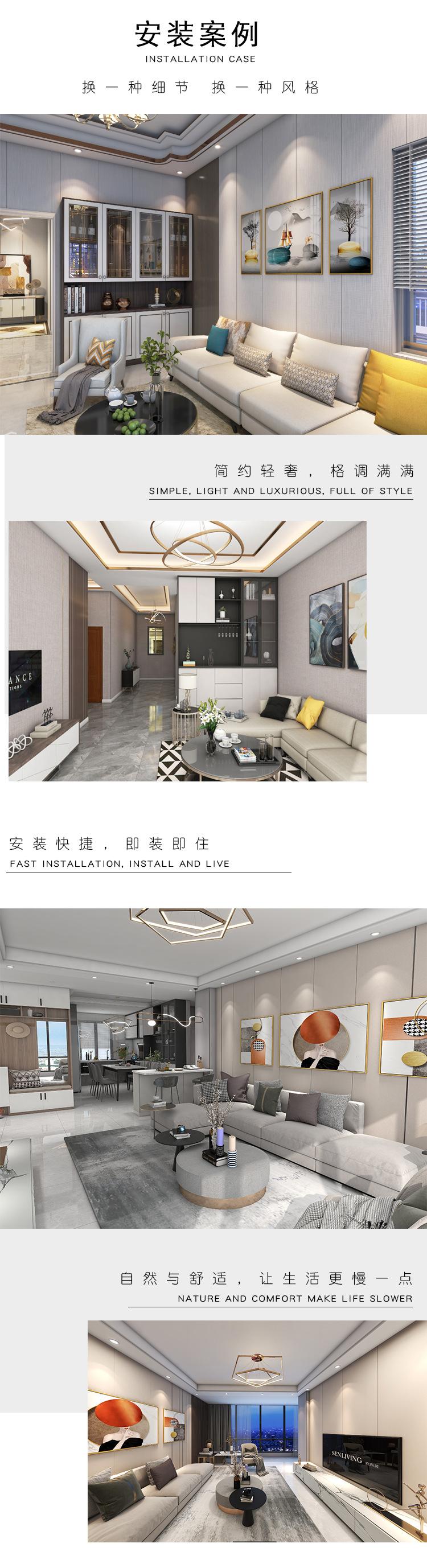 La altura habitual de los paneles decorativos es de 3 metros; la de los paneles de pared es de 2,6 metros, 2,8 metros o 3 metros. Para tamaños personalizados, contacte con el servicio de atención al cliente en línea.