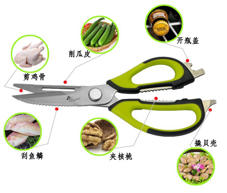 4. El espesor de corte es de 2.5-3.0MM. Las tijeras para huesos de pollo tienen una estructura razonable, una fuerte fuerza de corte y son afiladas.