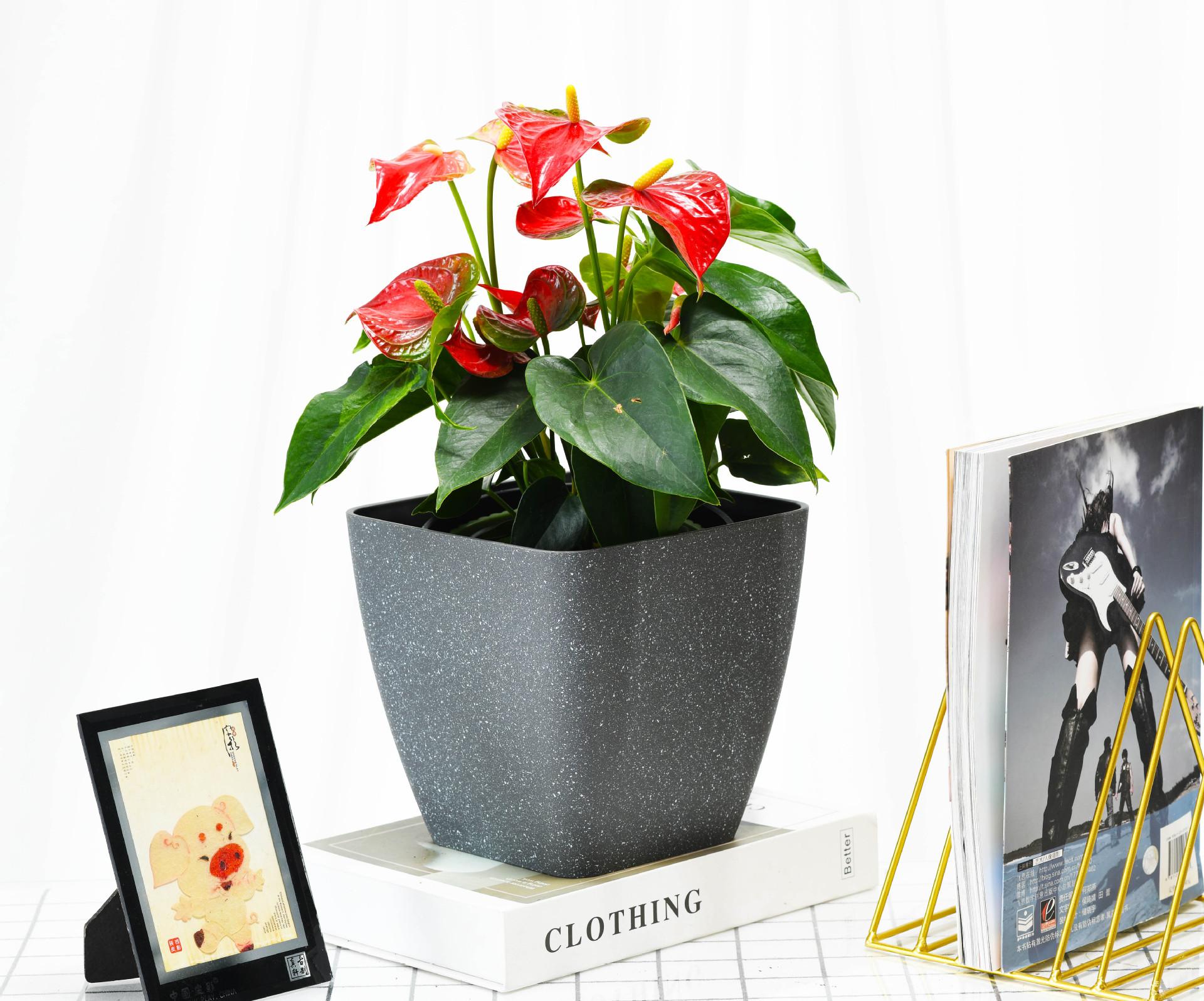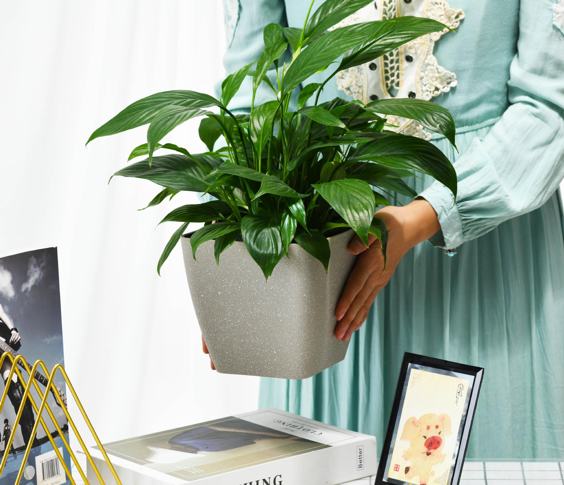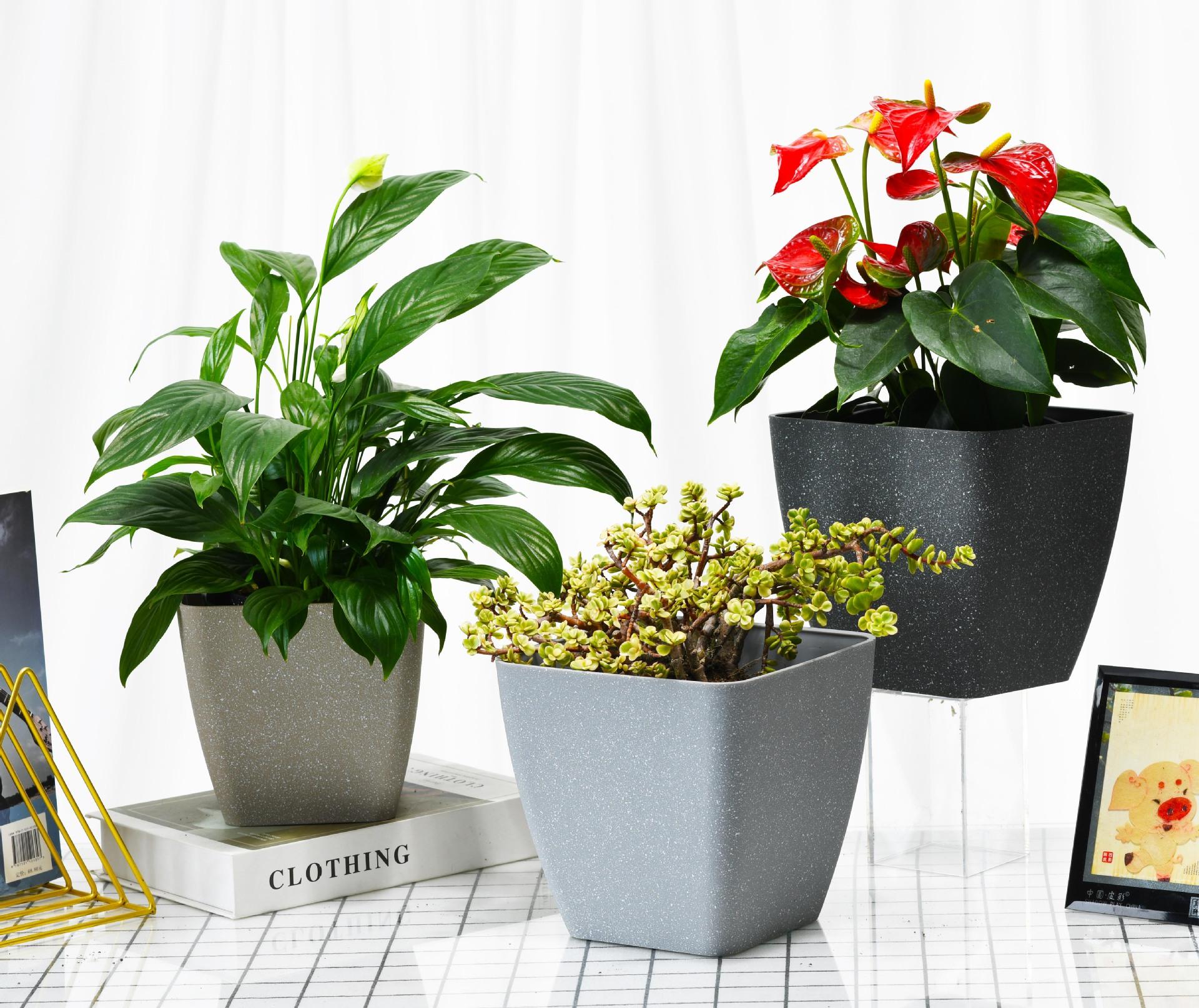 Maceta de resina de plástico grueso, suministro directo de fábrica, sencilla, imitación de mármol, cuadrada, para interiores, con rábano verde, maceta colorida.