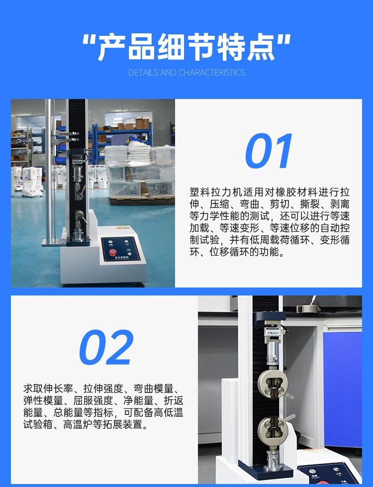 Plastic tensile machine is suitable for testing the mechanical properties of rubber materials such as stretchi...