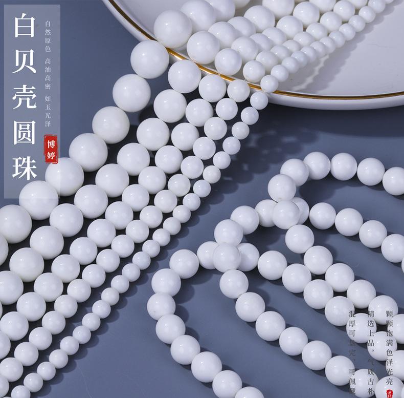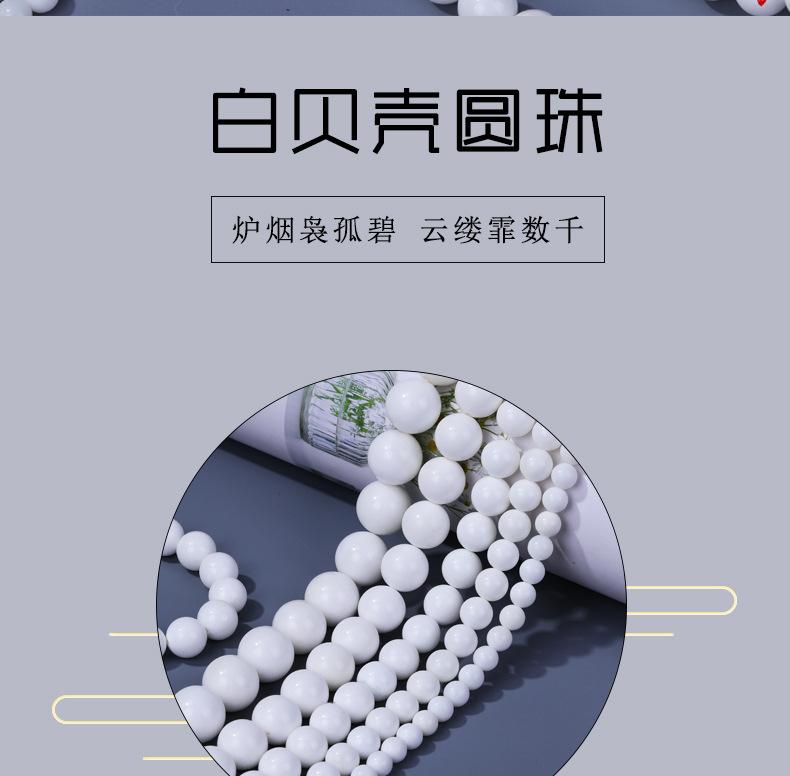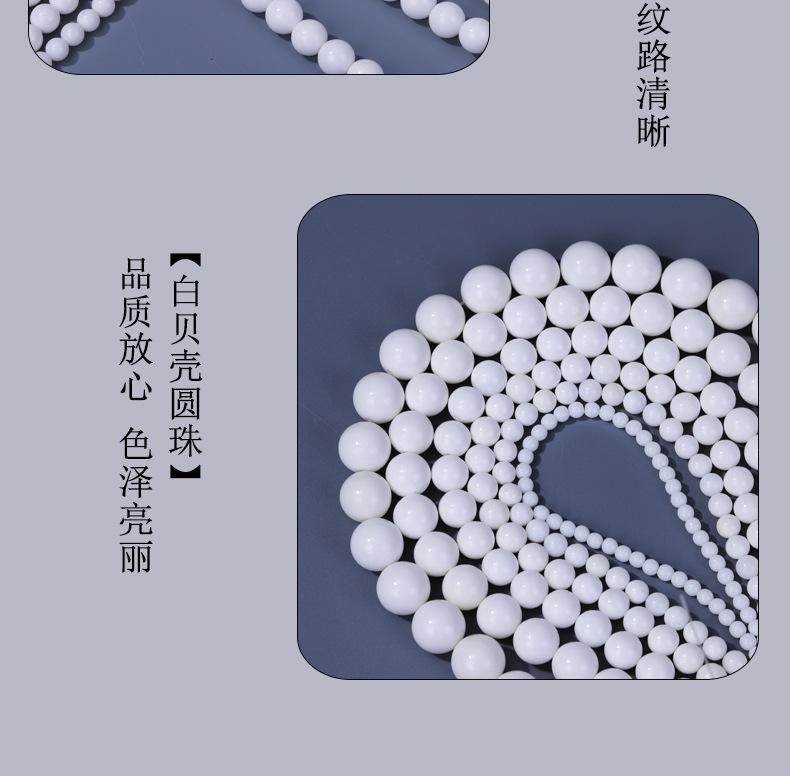 Cuentas redondas de concha blanca, accesorios de joyería hechos a mano, material de cuentas redondas semiacabadas, joyería de bricolaje hecha a mano, accesorios de ropa