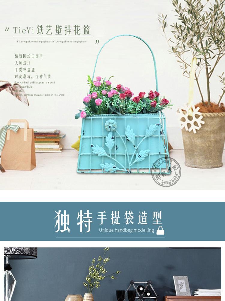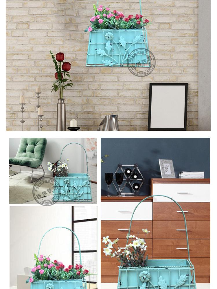 Creativo bolso de mano hierro colgante de pared estante para flores cesta de flores colgante cesta colgante montado en la pared estilo pastoral europeo flor artificial decorativa estante para flores