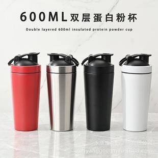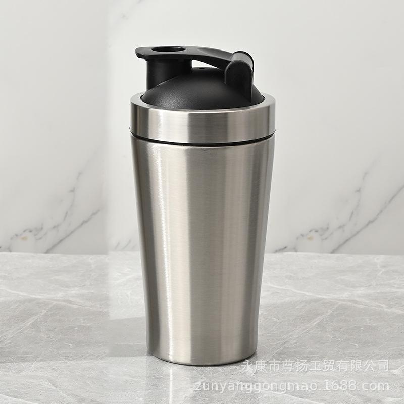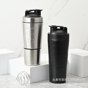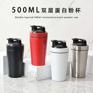 Vaso mezclador de 500 ml para ejercicio físico al aire libre con aislamiento, para batidos de proteína en polvo, vaso deportivo para batidos, vaso mezclador de acero inoxidable de doble capa