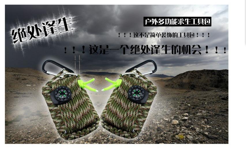 Kit de Supervivencia al Aire Libre Aventura Salvaje Camping Portátil Multifunción Kit de Emergencia Pedernal Sierra de Alambre