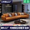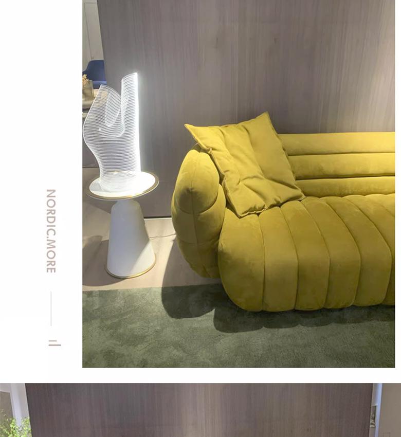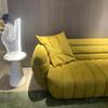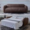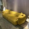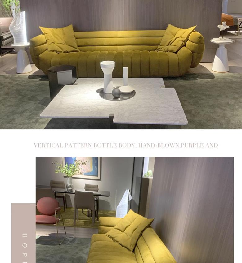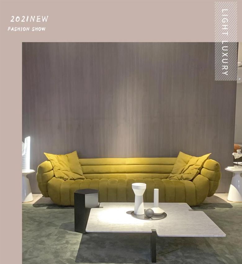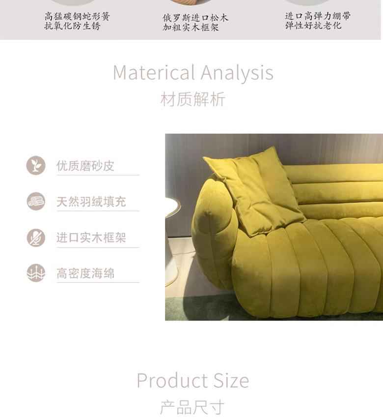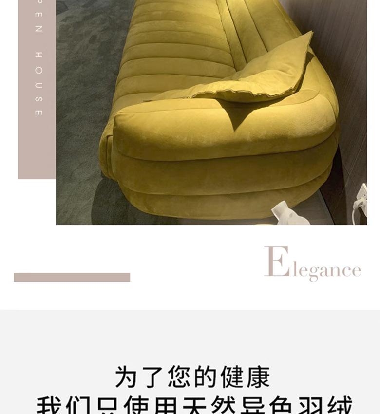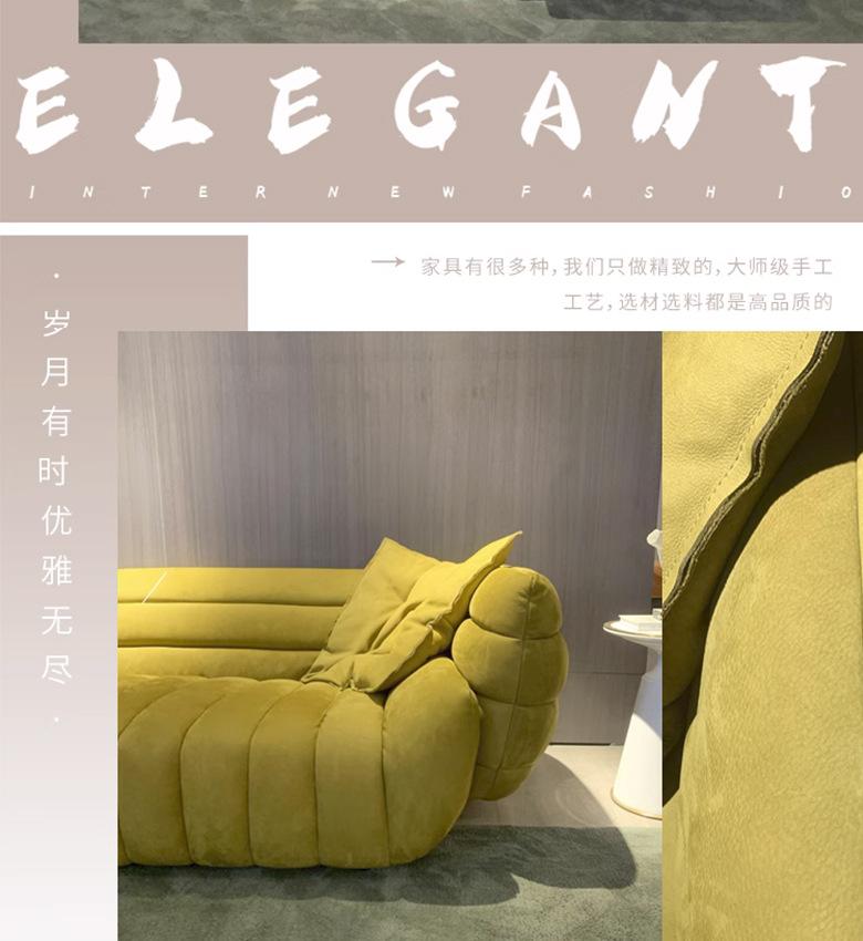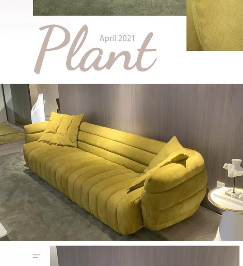 Sofá italiano sencillo de tres plazas con diseño de plátano y tela para sala de estar, con cuero esmerilado y tecnología de diseño.