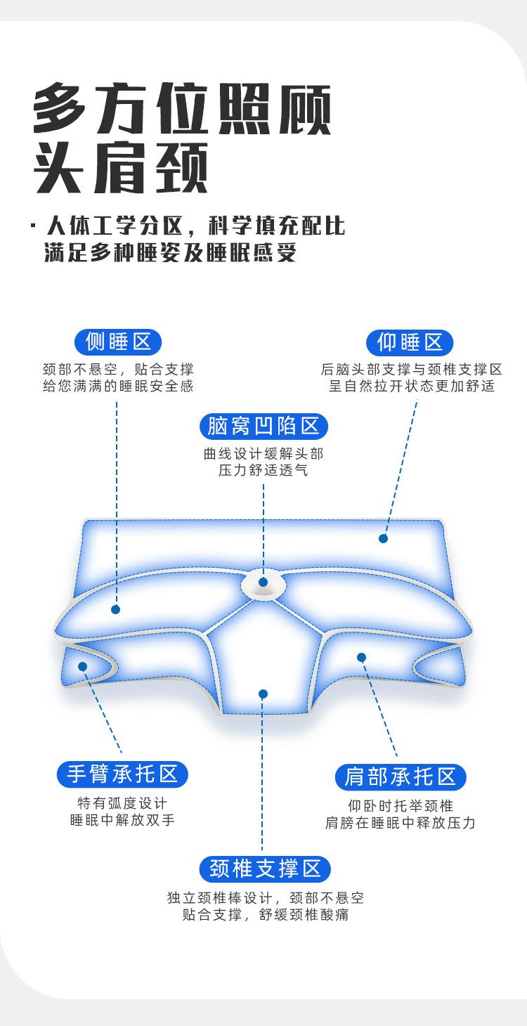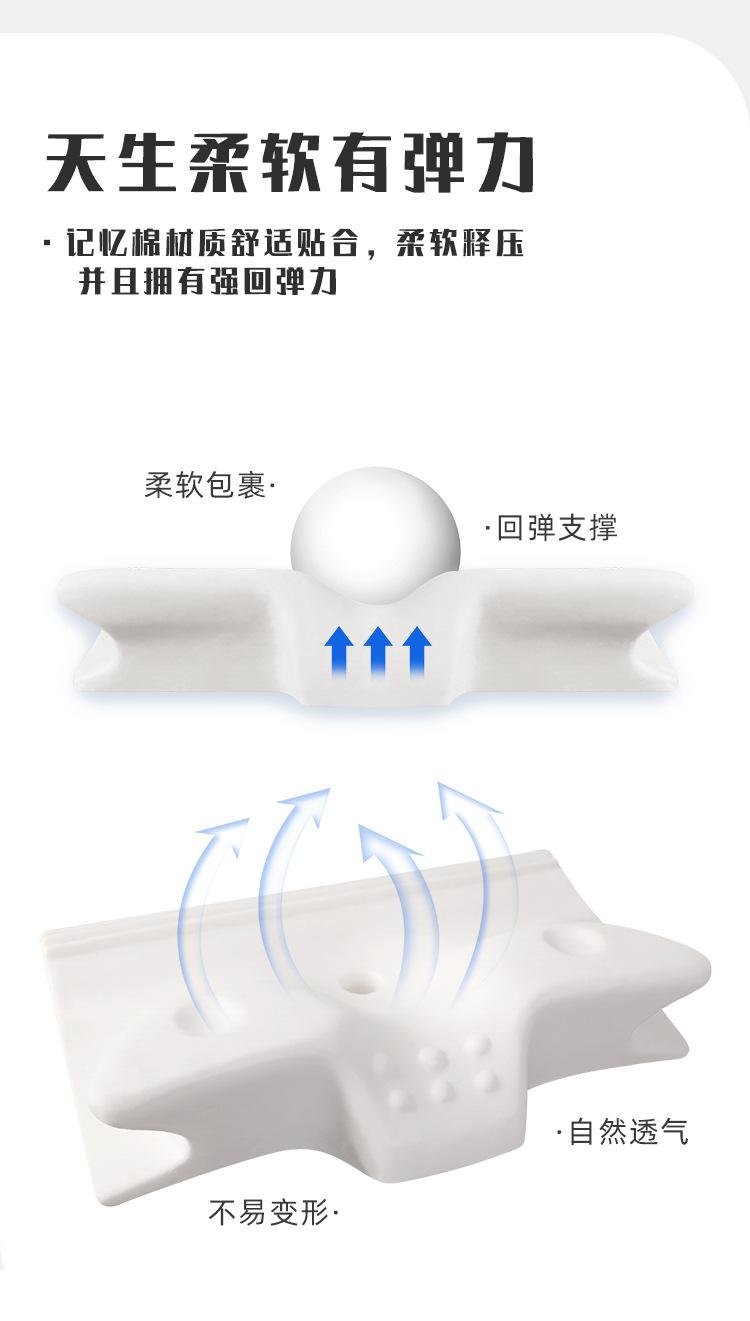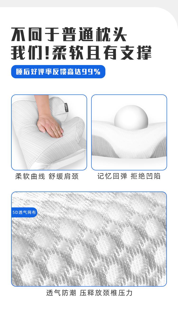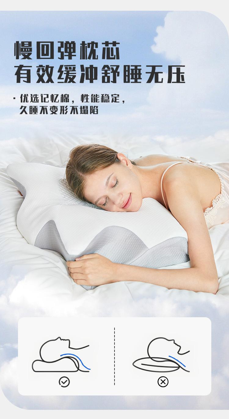 Almohada de espuma viscoelástica con forma de cuerno, con rebote lento y soporte para el cuello, para dormir de lado y con presión cero.
