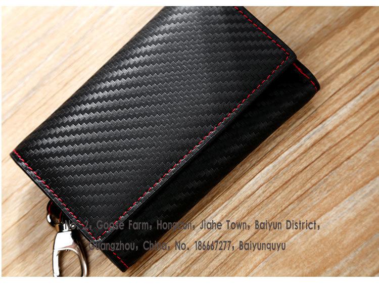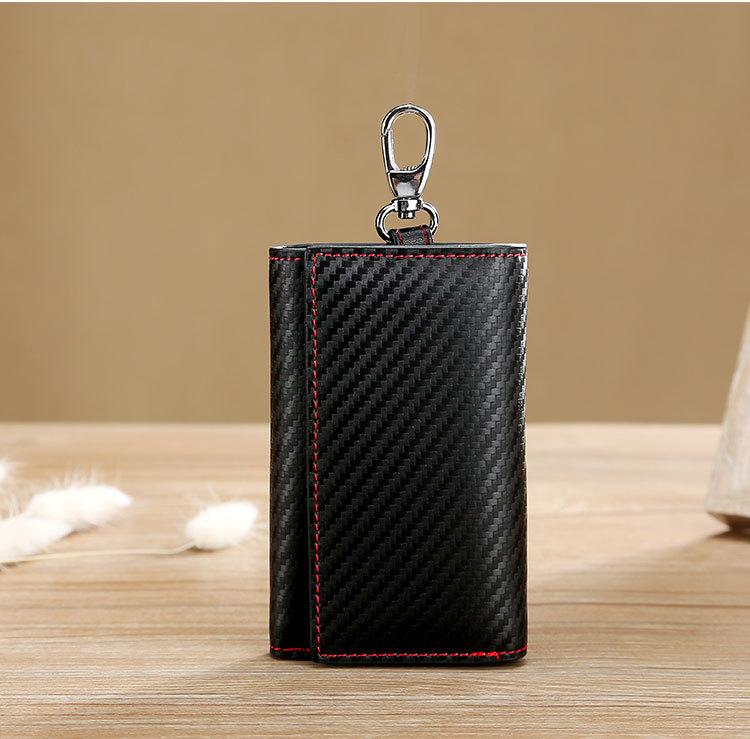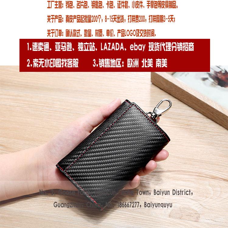 Bolsa con Cremallera Personalizada por el Fabricante de Venta Caliente Transfronteriza Bolsa con Patrón de Esterilla de Paja Bolsa Multifuncional para Llaves Fibra de Carbono Ranuras para Múltiples Tarjetas Monedero