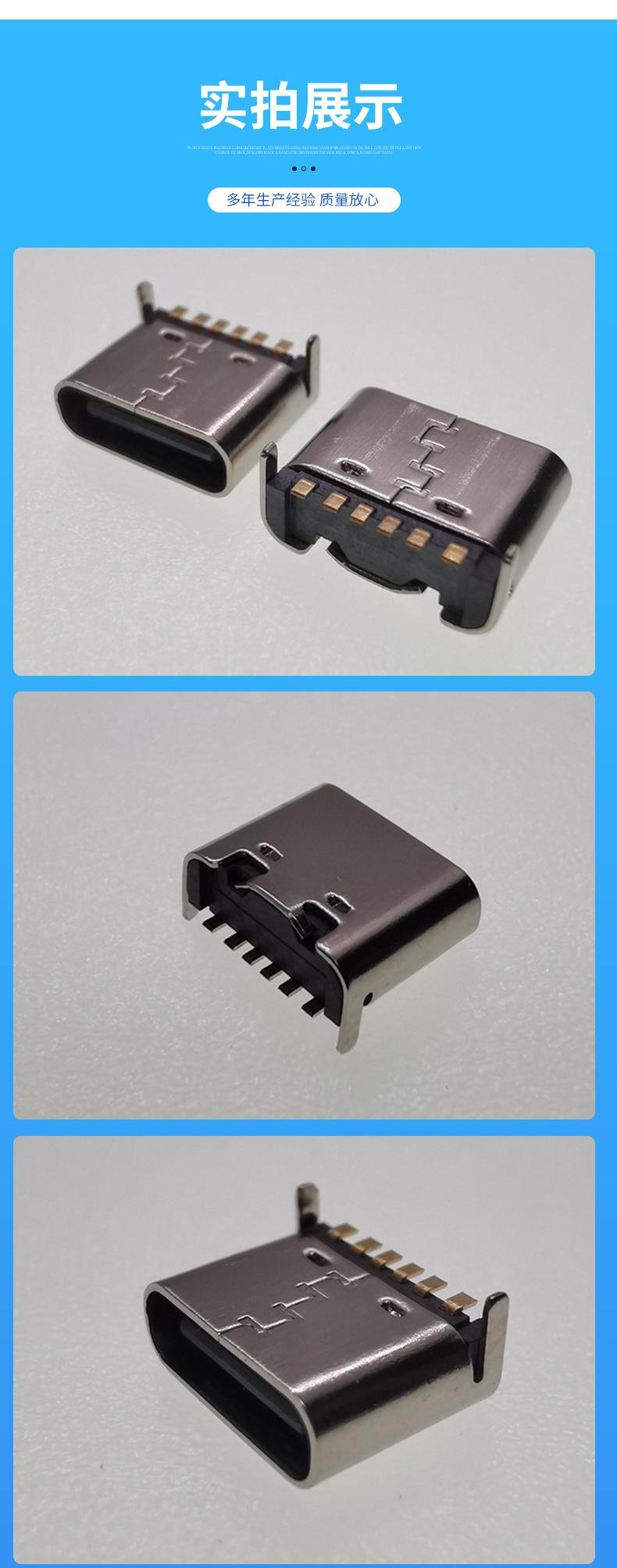Conector de placa de enchufe SMT de dos pines con base hembra TYPE-C de 6 pines y conector de placa de enchufe hembra TYPE-C de dos ...